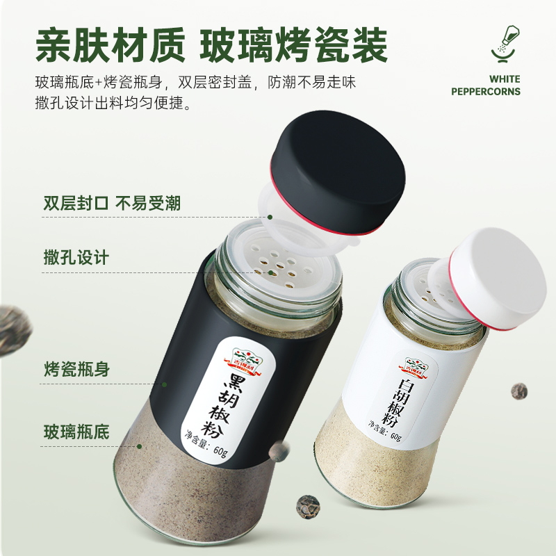 吉得利白胡椒粉黑胡椒粉组合装 2瓶牛排撒料烤肉料香辛料 60g