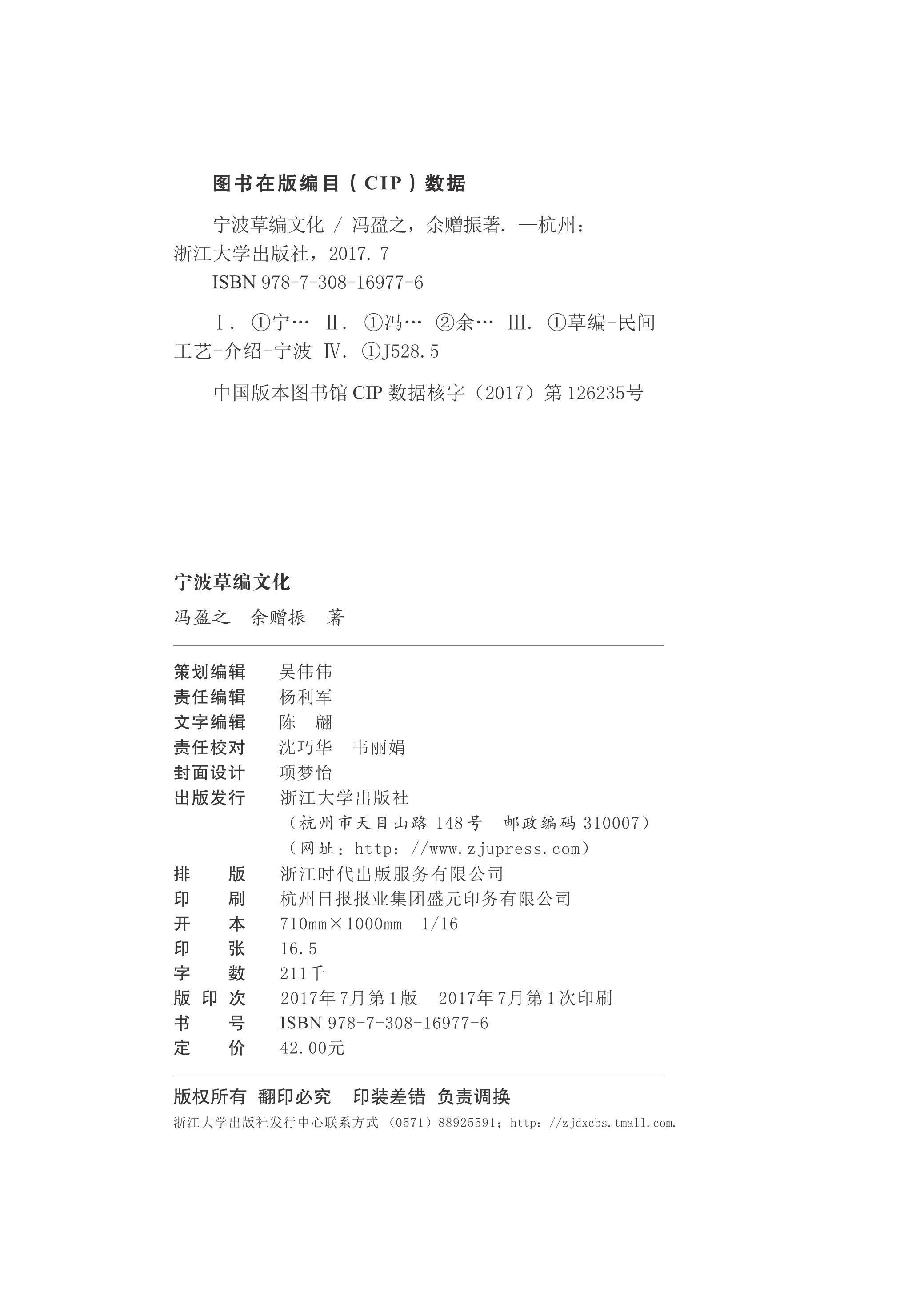 浙江大学出版 余赠振 社 冯盈之 宁波草编文化