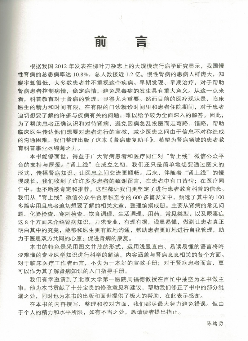 肾病康复助手 北京大学医学出版 医生和患者都在看 陈绪勇主编 社 肾病科普书 现货当日发