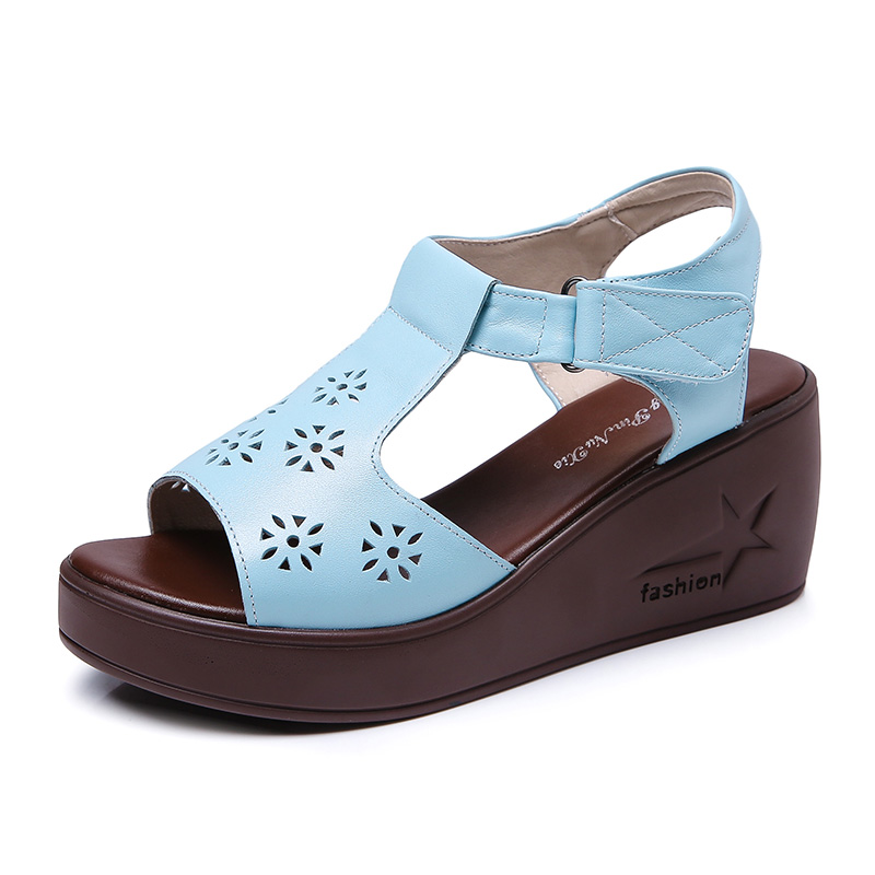 夏季 中空沙滩鞋 凉鞋 厚底坡跟女鞋 女 女镂空圆头露趾鞋 典缀2025新款