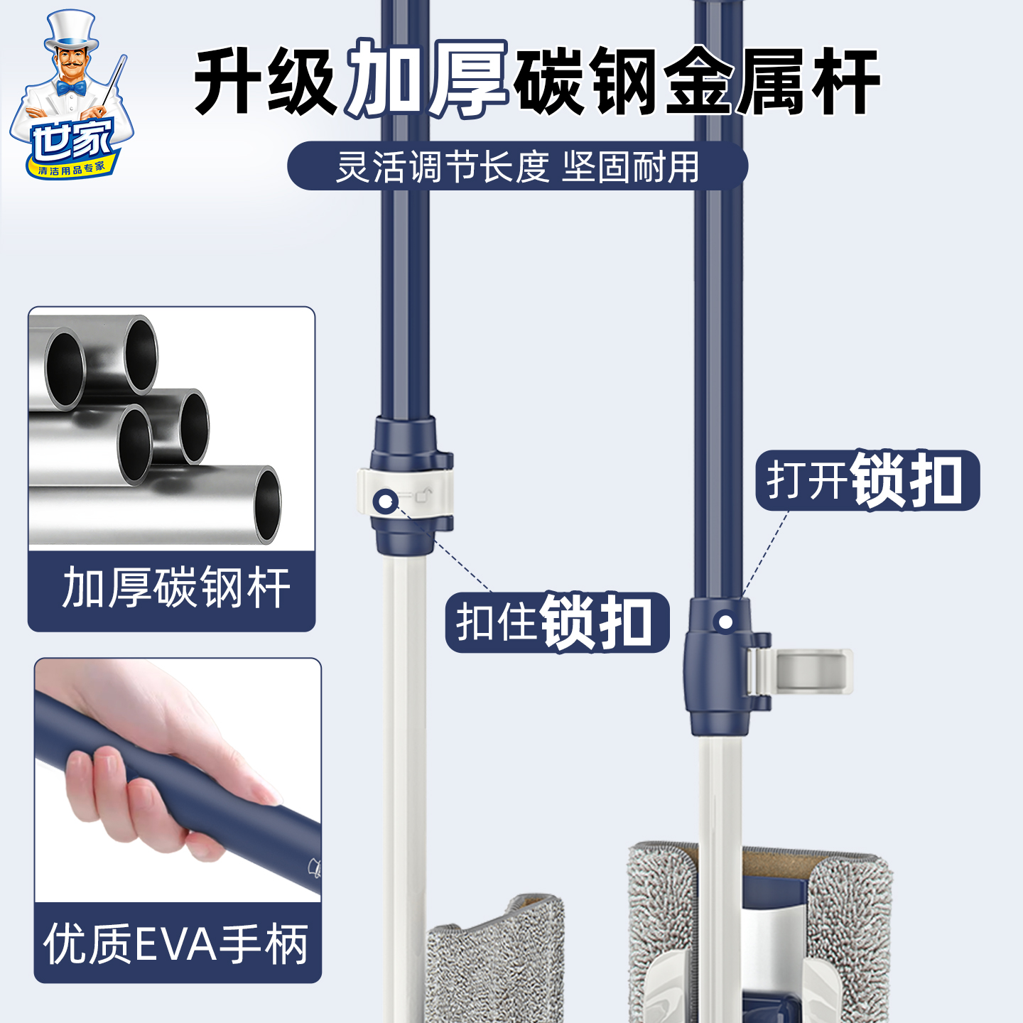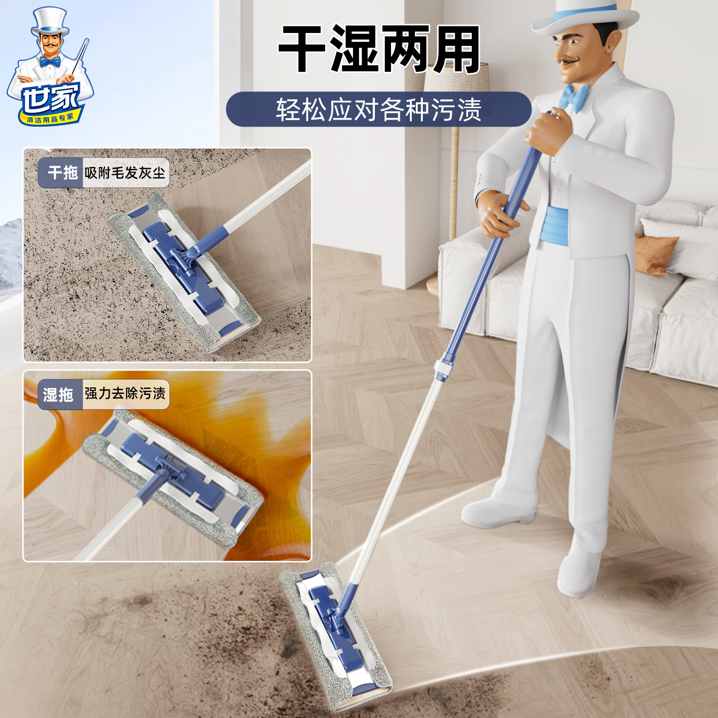 世家合金平板拖把家用一拖净平拖地木地板除尘推夹布拖把吸水墩布