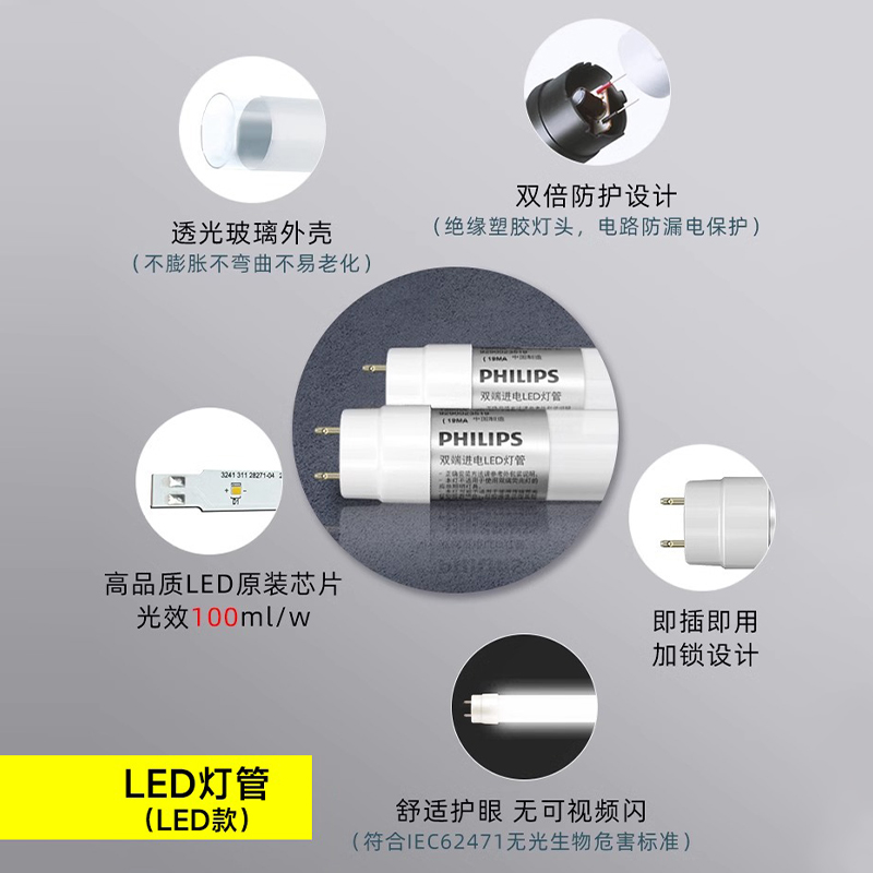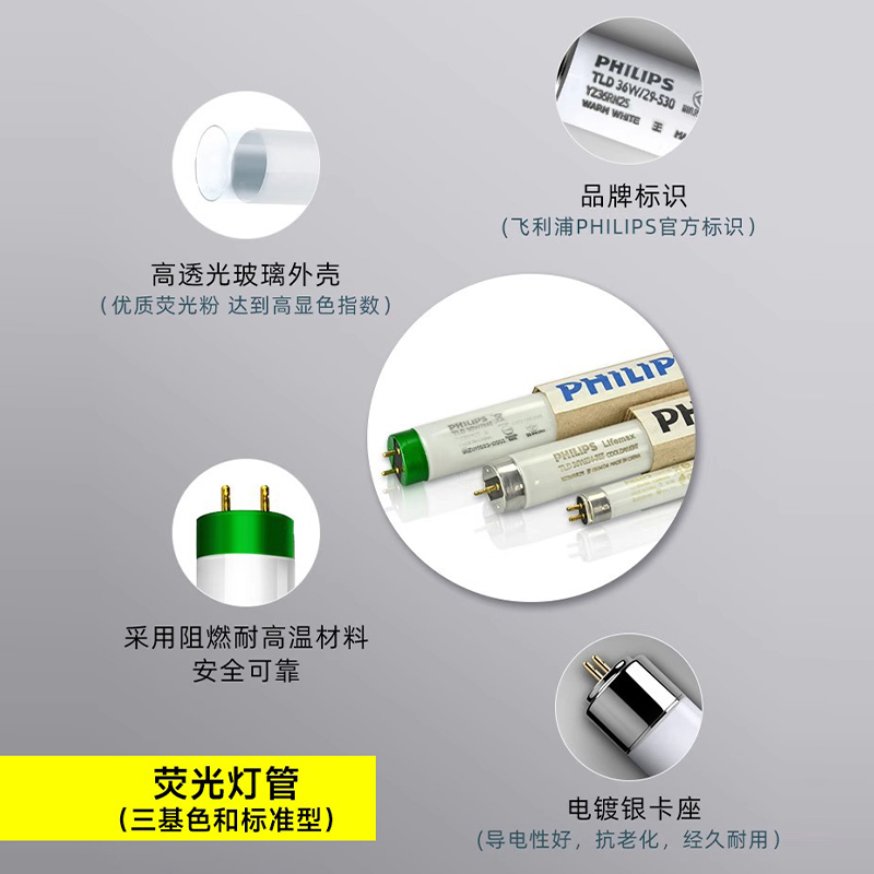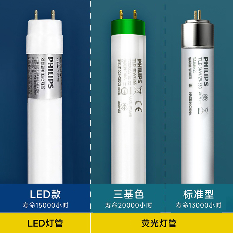 飞利浦老式 日光灯管T8三基色T5细管LED荧光长条家用电杠一体化36w