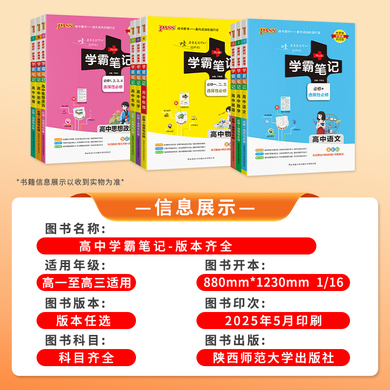 全套任选 笔记高一新教材教辅复习资料高二高三高考辅导书知识清单 2026学霸笔记高中数学语文英语物理政治生物化学历史地理人教版