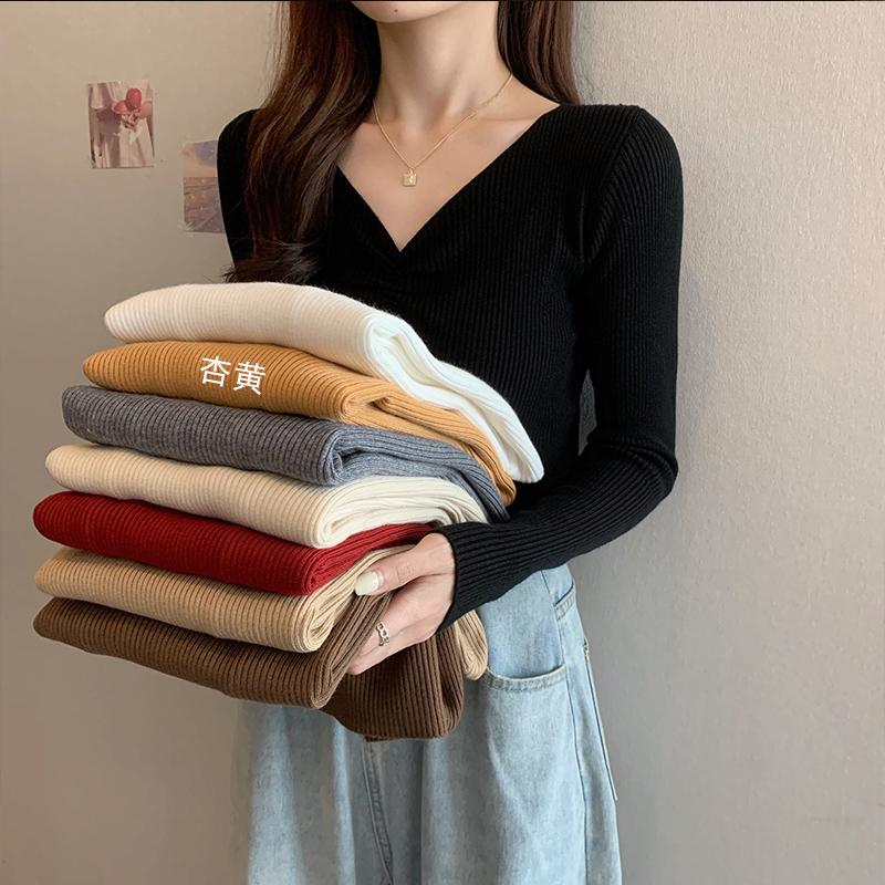 修身 2025秋冬新款 上衣洋气爆款 打底针织衫 低领毛衣女内搭 v领长袖