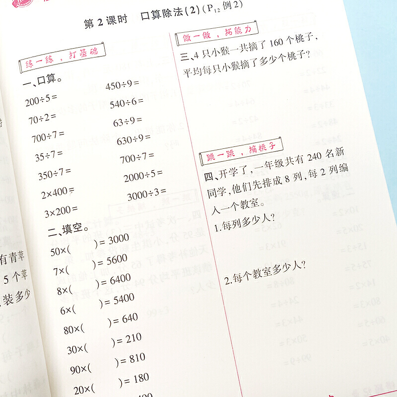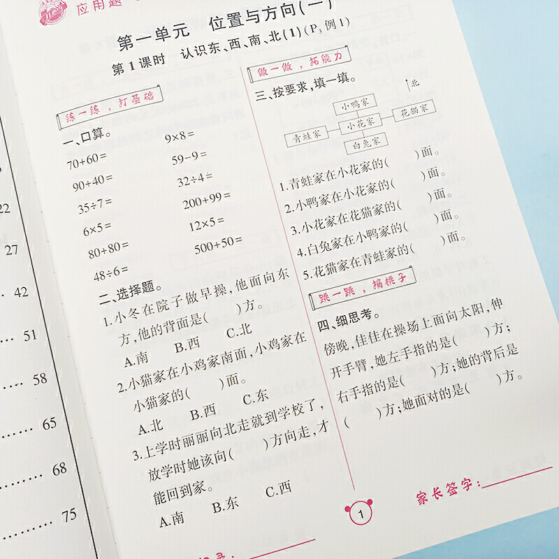 100加减乘除法认识图形比大小分解与组成 人教版 教材同步双项互动练习册 数学逻辑思 小学生三年级下册口算题卡大通关与应用题