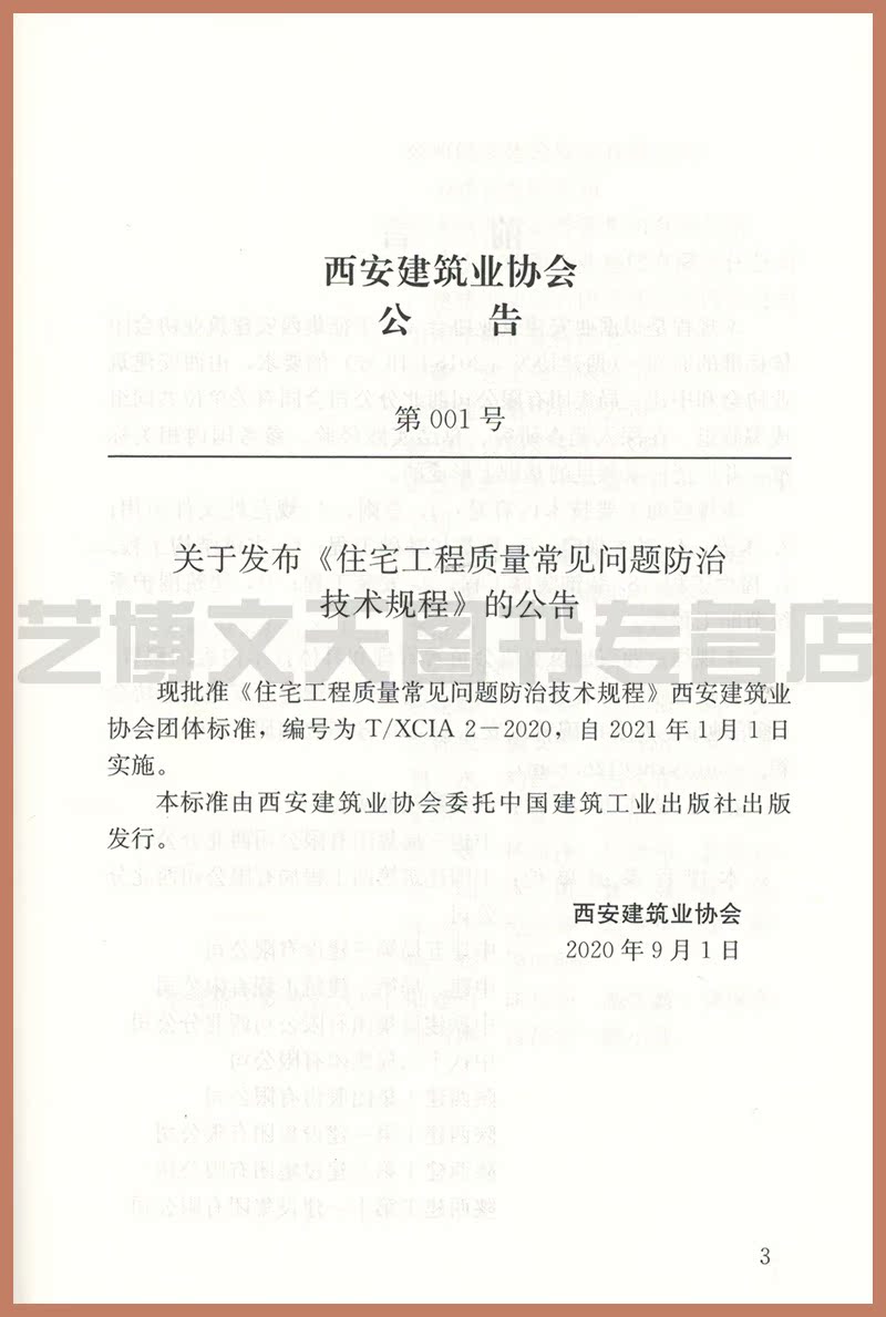 2020 住宅工程质量常见问题防治技术规程 2020年9月1日 西安建筑业协会团体标准 西安建筑业协会发布 XCIA