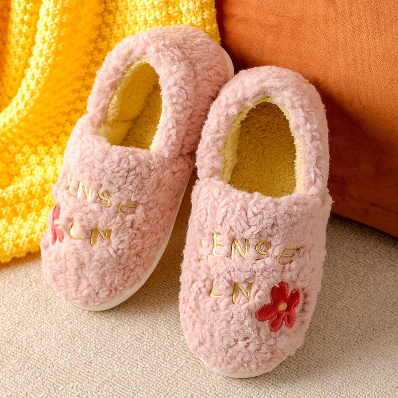冬天室内居家拖鞋 家用 男女情侣可爱毛绒花朵家居保暖毛茸茸棉拖鞋