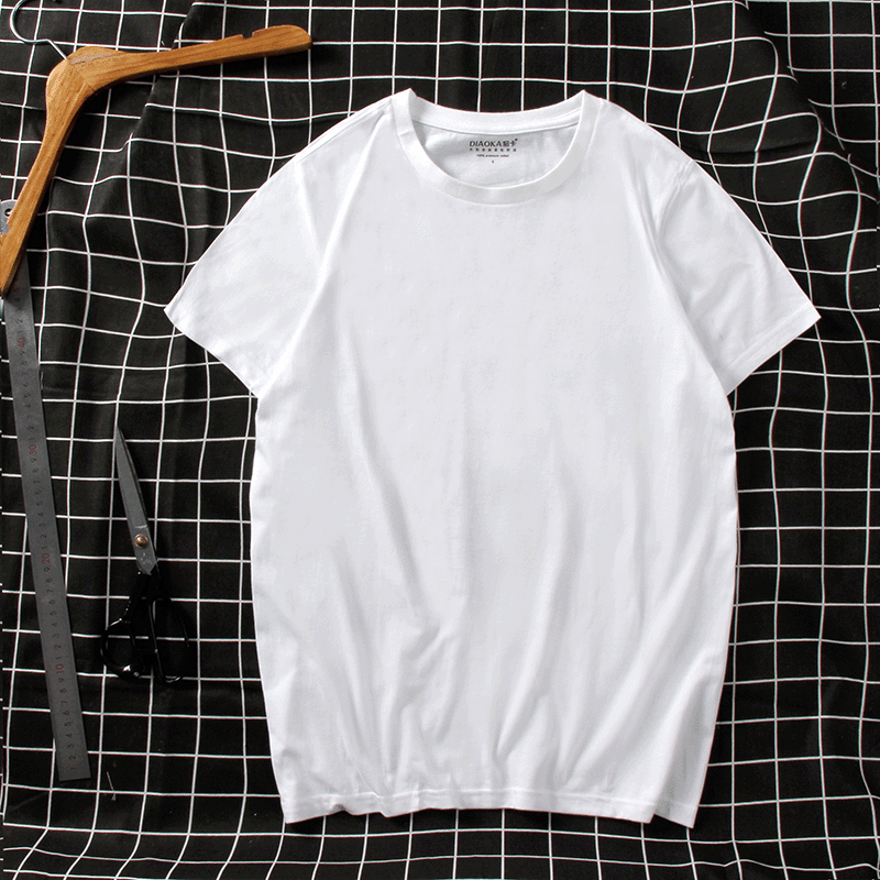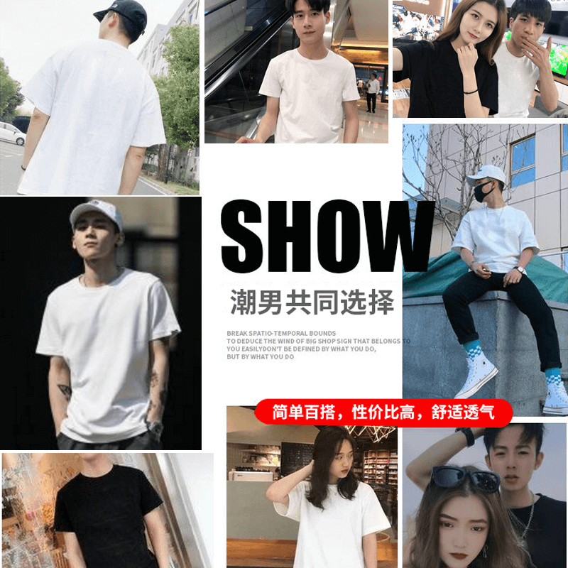 宽松情侣装 貂卡夏季 圆领纯色白色全棉打底衫 短袖 潮牌纯棉t恤男士