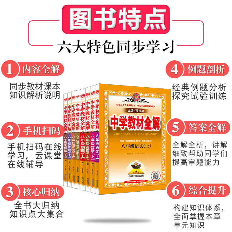 任选 金星教育 2025春 数学英语物理化学政史地生 8年级初二中学教辅同步教材讲解工具书 中学教材全解八年级上册下册语文人教版