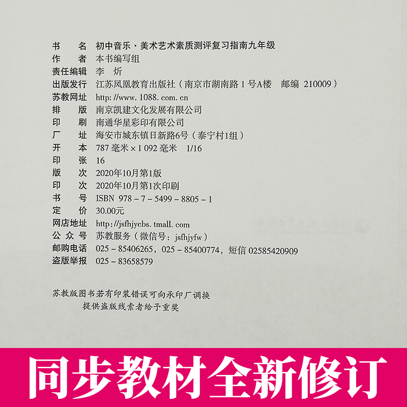 社艺术教育读本 中学音乐美术考试初中通用考试复习辅导书江苏凤凰教育出版 2023新版 初中音乐美术艺术素质测评复习指南九年级9年级
