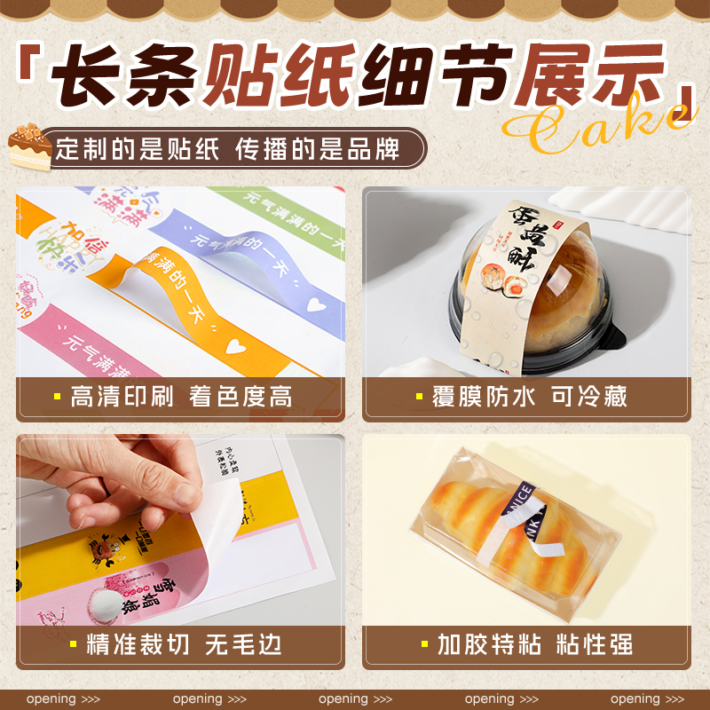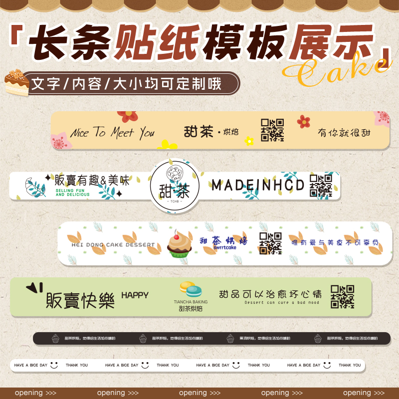 烘焙长条贴纸定制面包蛋糕包装 定做 标签标签不干胶封口logo二维码