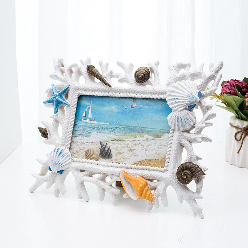 地中海珊瑚贝壳树脂相框 创意婚纱照片相框架摆台摆件画框6寸定制