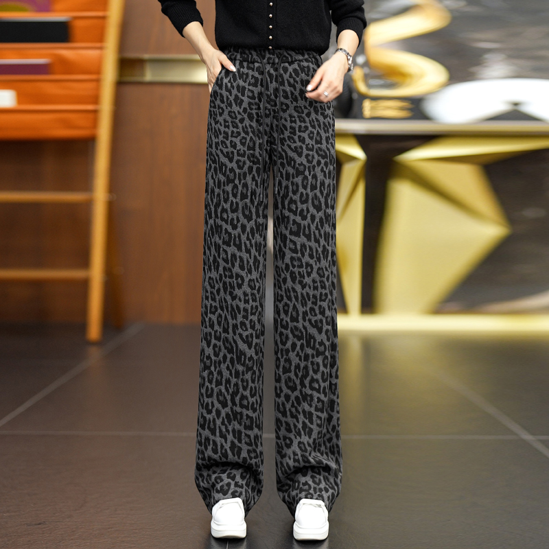 宽松垂坠感休闲直筒裤 加厚2025新款 子秋冬 女冬季 豹纹羊毛呢阔腿裤