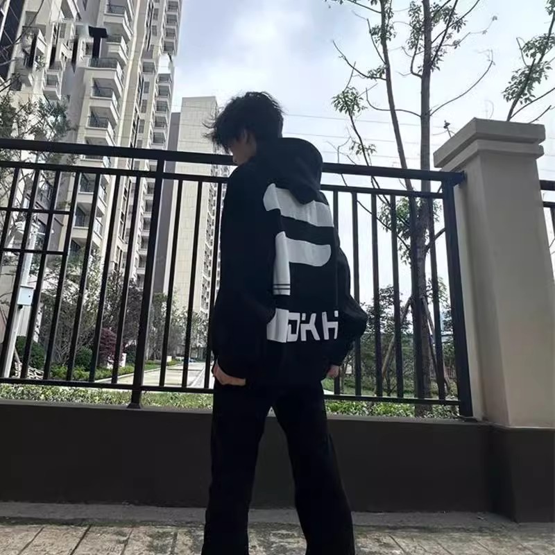 痞帅百搭情侣帽衫 休闲印花连帽卫衣男女春秋新款 300斤美式 特大码