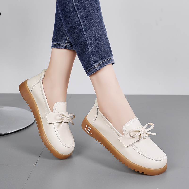 懒人皮鞋 软底舒适豆豆鞋 41到43时尚 大码 孕妇 女士春秋真皮妈妈单鞋