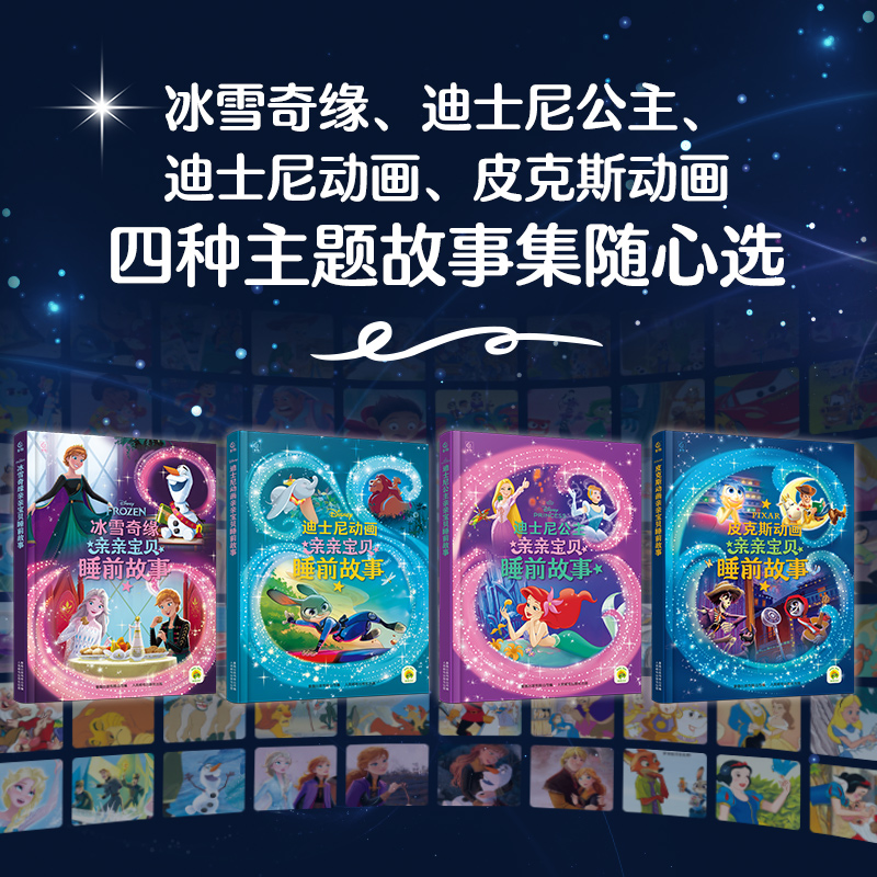 亲亲宝贝睡前故事全套共4册赠束口袋冰雪奇缘迪士尼公主枕边故事书大开本软精装 可点读宝宝睡前读物幼儿园老师动画图画书 非注音版
