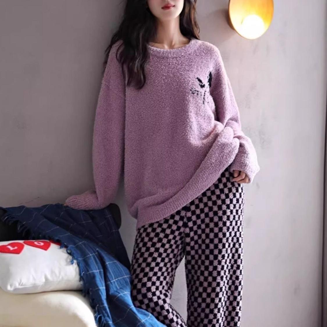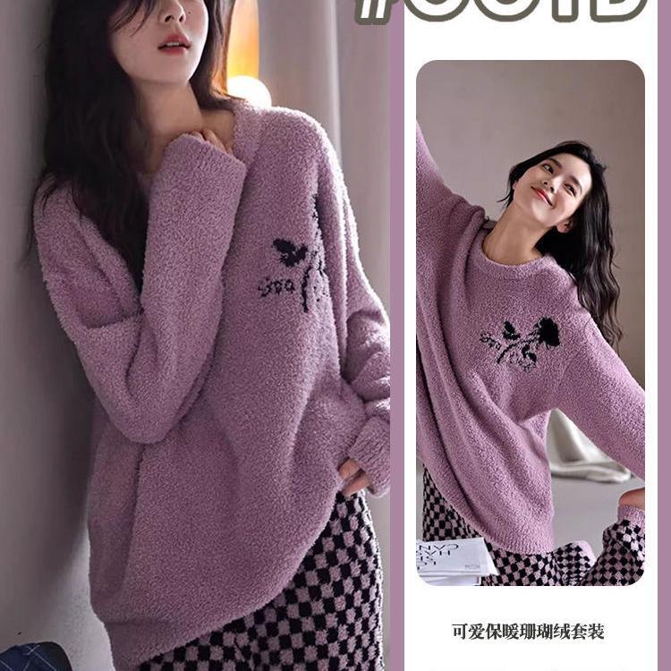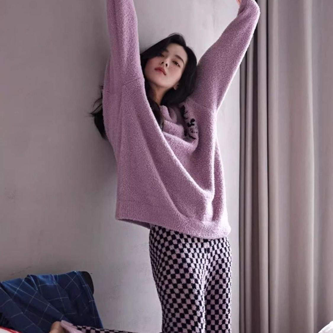 维密宅度假系列奶舒绒睡衣轻柔抗静电保暖家居服套装 女可外穿