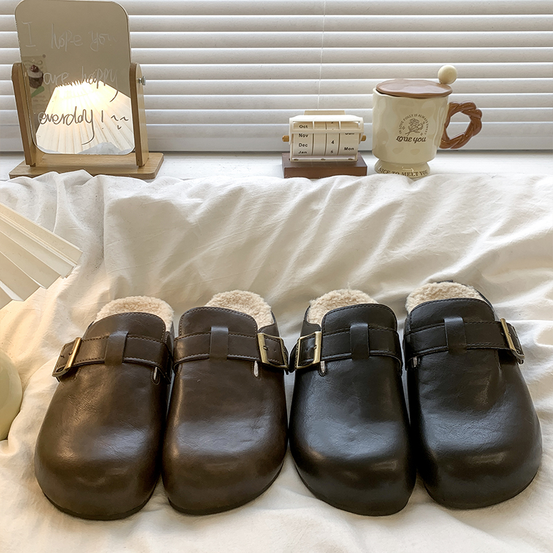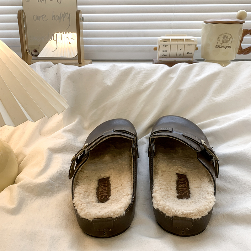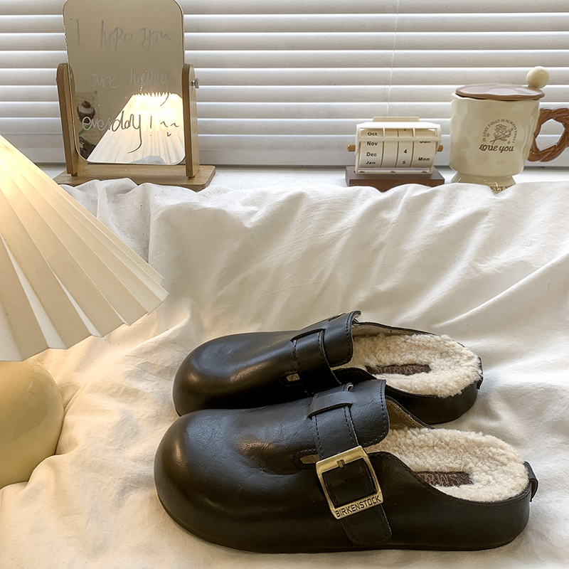 一脚蹬加绒棉拖鞋 厚底勃肯鞋 秋冬爆款 女外穿2025新款 包头毛毛拖鞋