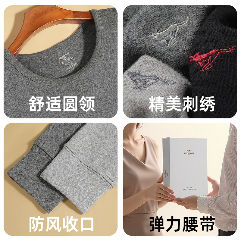 男士 冬季 套装 青少年打底保暖内衣男款 纯棉全棉毛衫 七匹狼秋衣秋裤