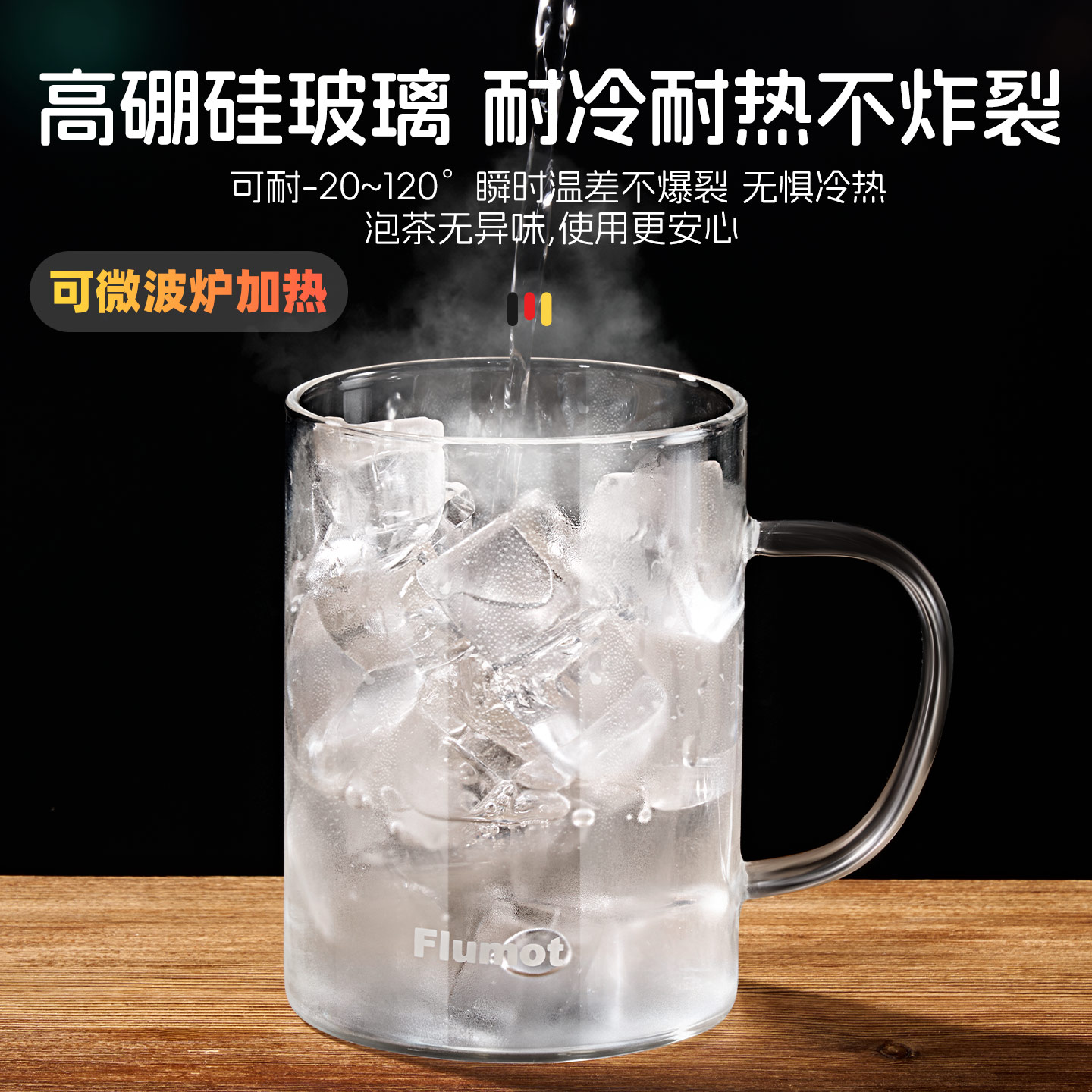 玻璃早餐燕麦牛奶杯微波炉可加热奶水杯子耐高温带把手盖 自营