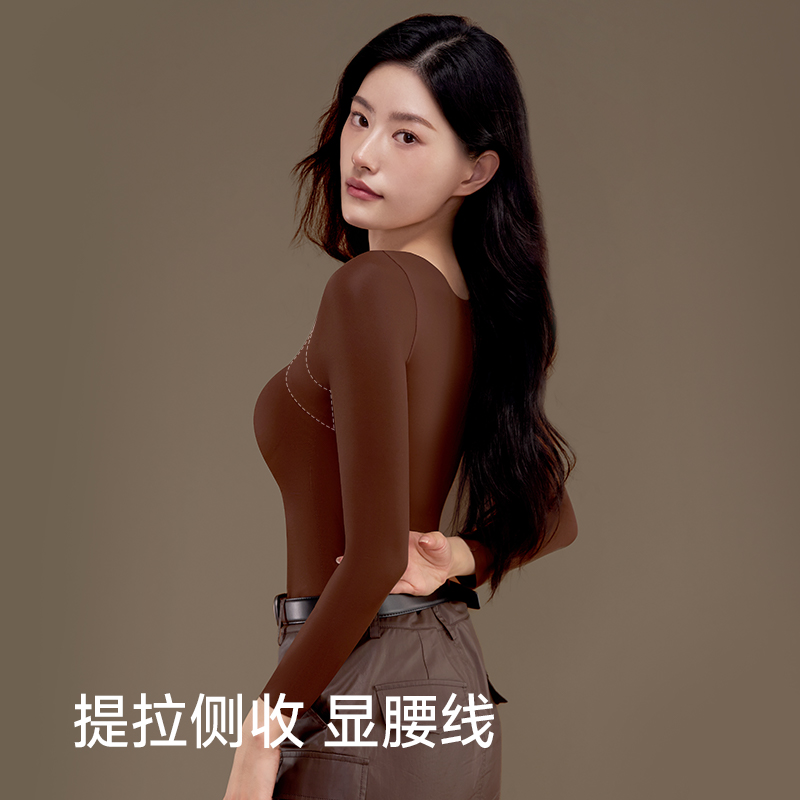 套装 保暖内衣女秋衣秋裤 免穿文胸 内搭可外穿秋衣女V领长袖 打底衫