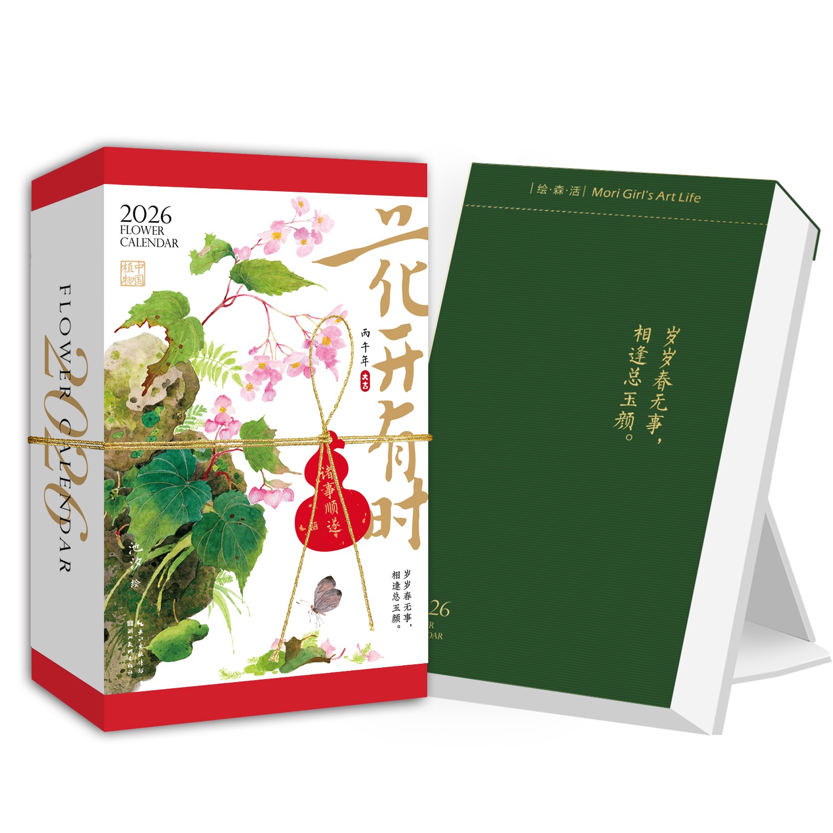 赠贺卡 手撕日历每日一撕马年桌面摆件创意台历原创水彩花卉插画手账节气诗词图书绘森活女生礼物calendar 花开有时日历2026年新款