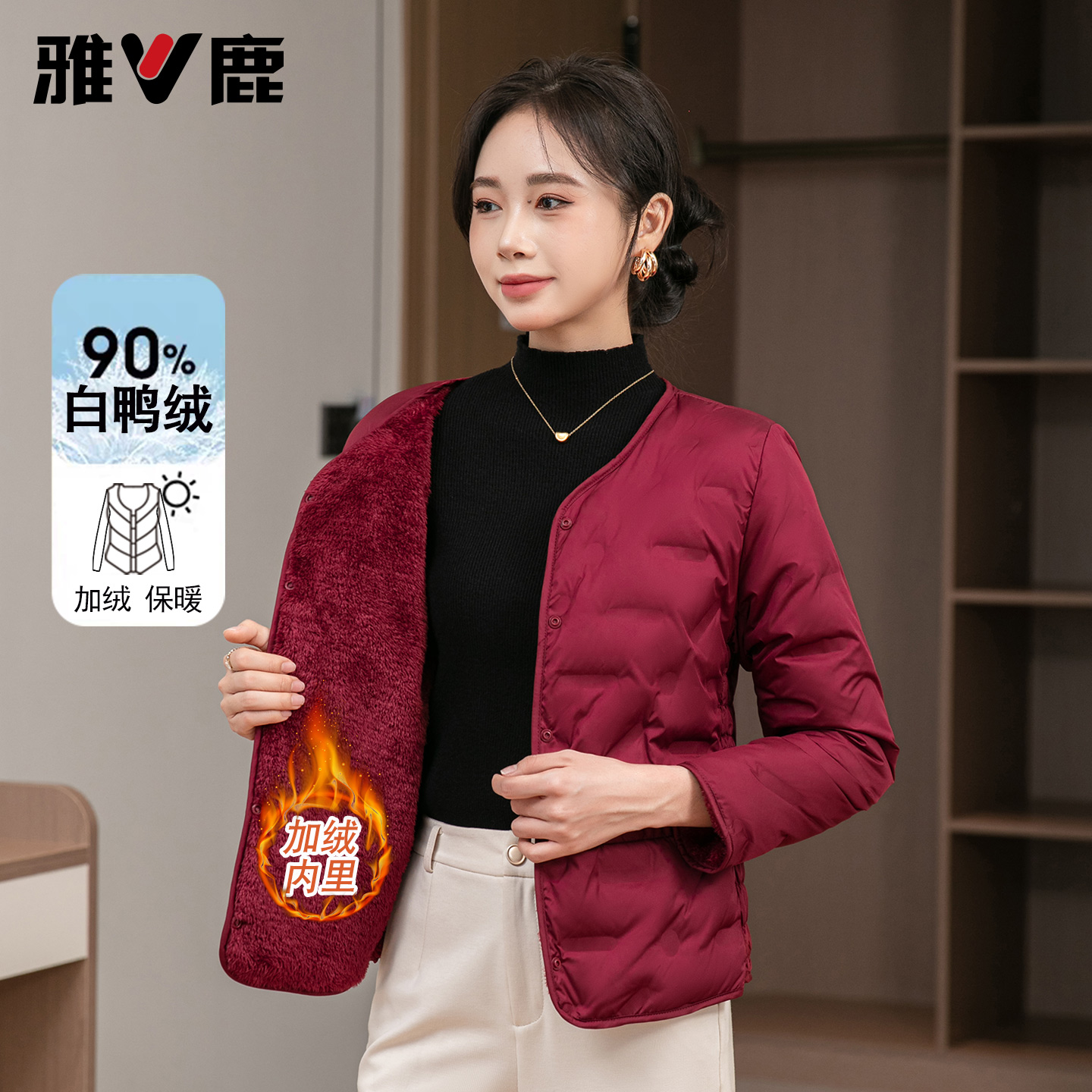 长袖 短款 外套 贴身保暖时尚 雅鹿加绒加厚羽绒内胆女2025秋冬新款