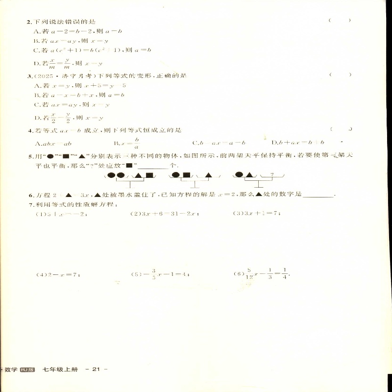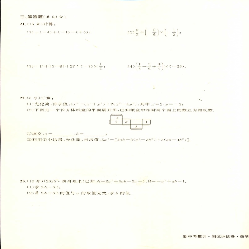 2025六三制7七年级上册数学测试评估卷新中考集训山东美术出版 社配人教版