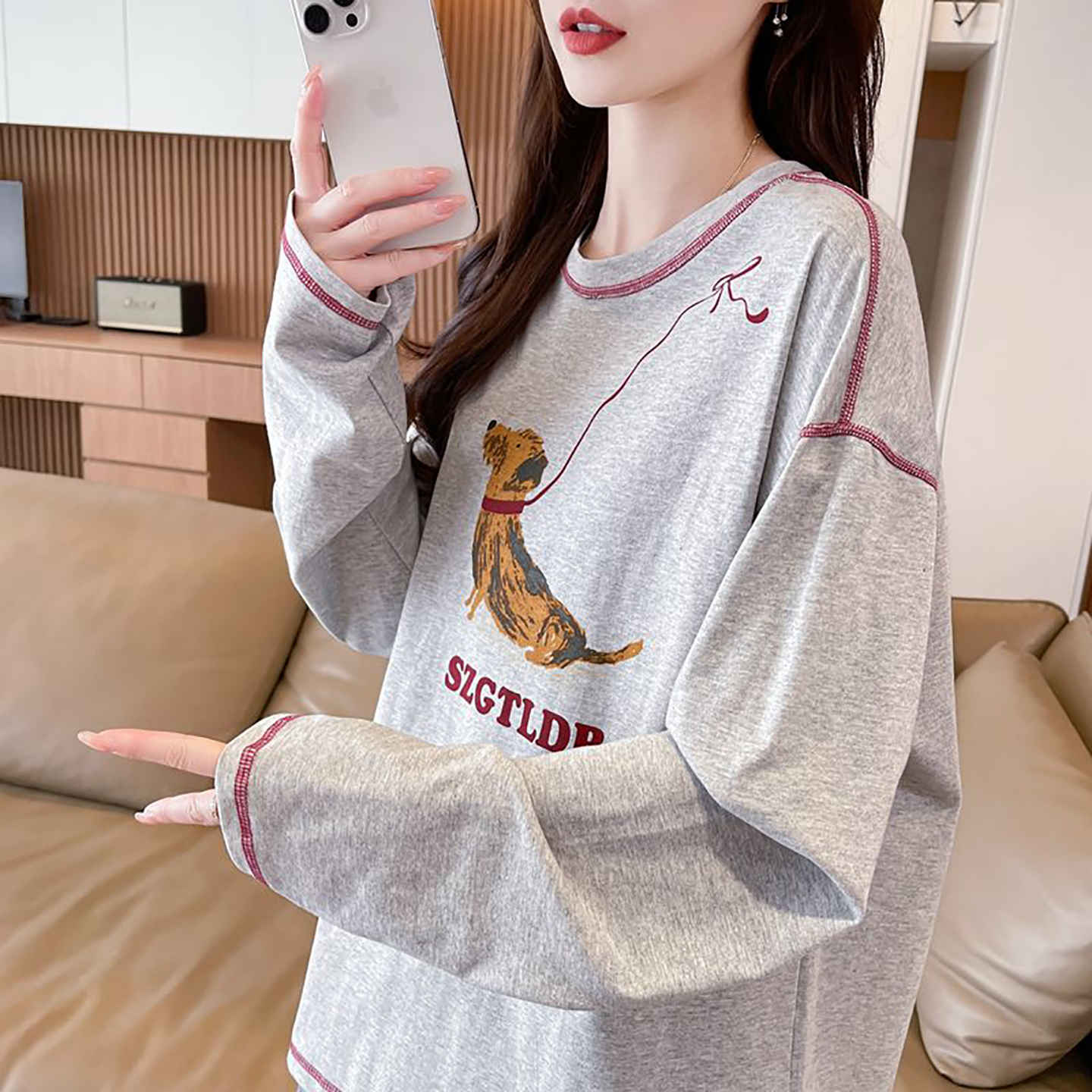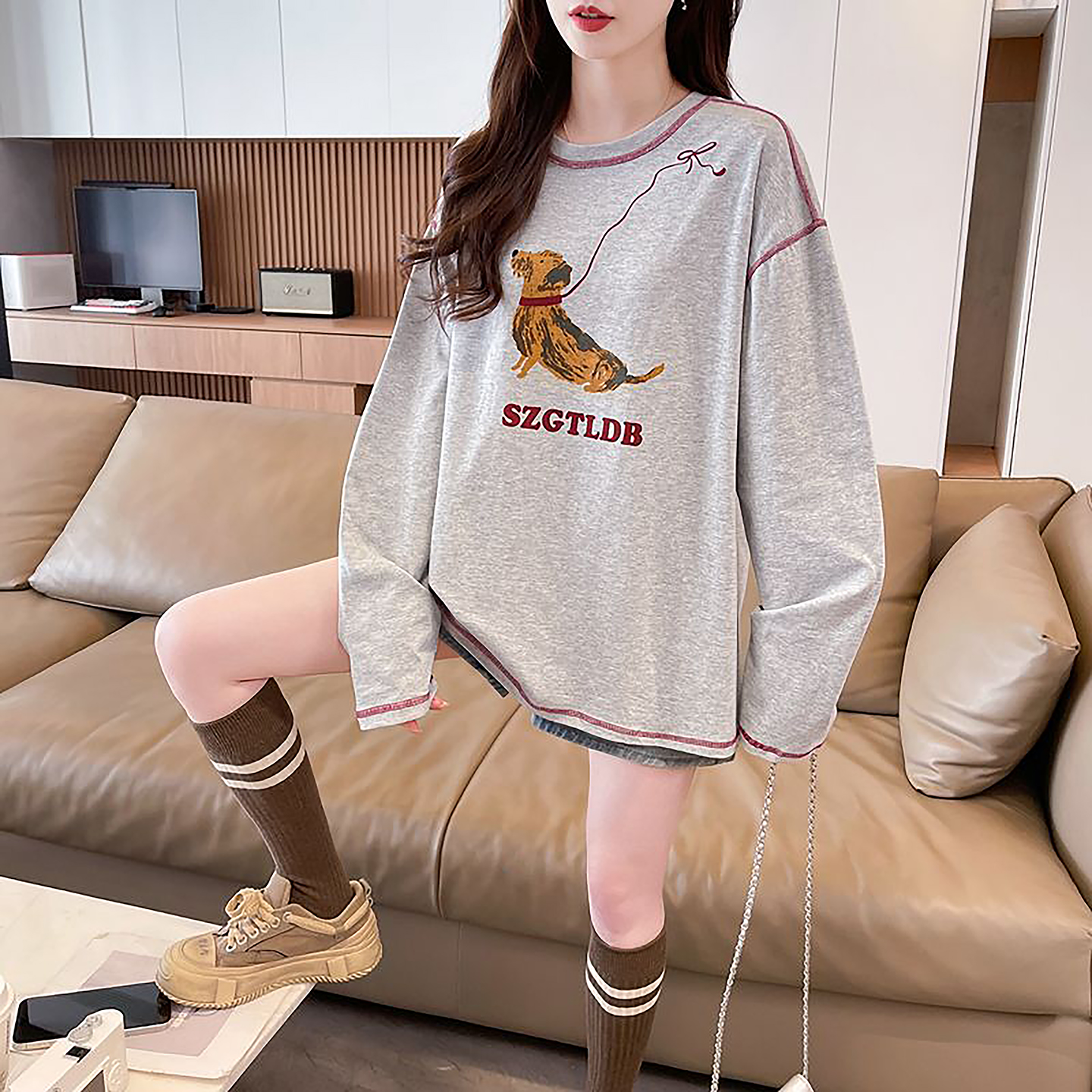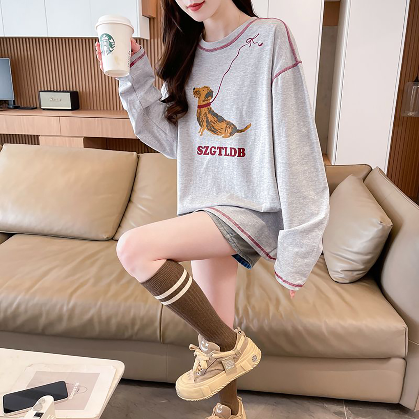 高级感长袖 爆款 打底上衣 大码 超好看纯棉卡通小狗卫衣女2025春秋款