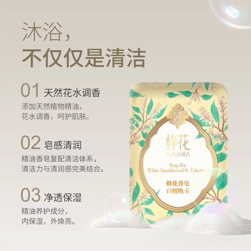蜂花FLAUHRA香皂梨韵春茶白檀晚玉香氛沐浴肥皂茉莉老牌精油清洁