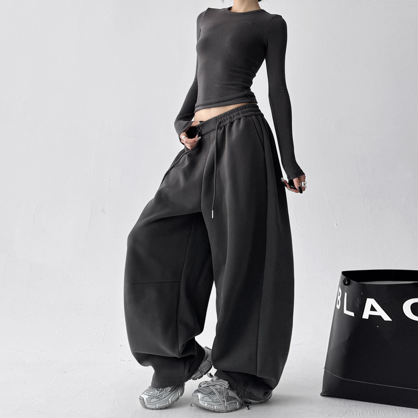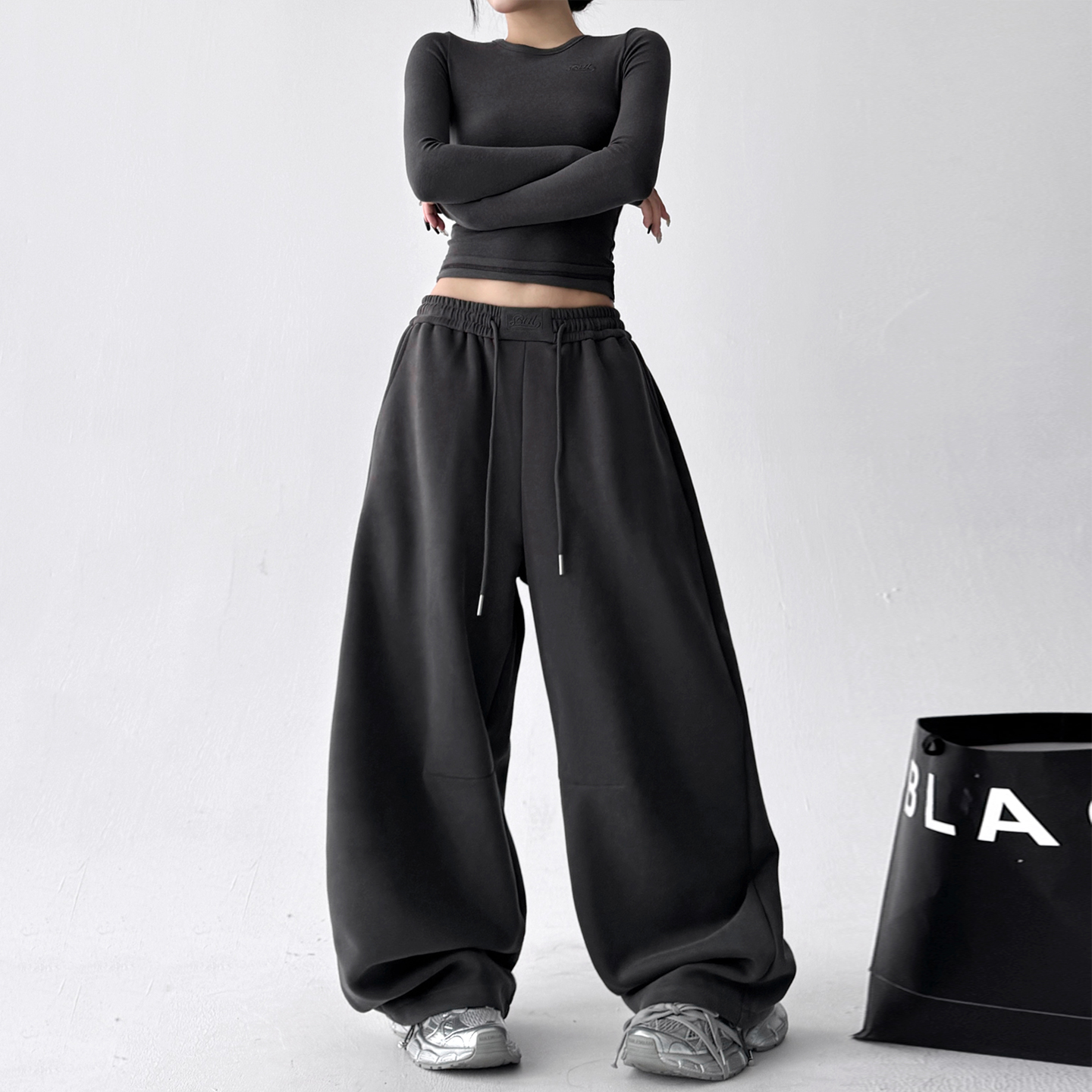 子 高腰休闲宽松显瘦简约加厚加长阔腿裤 针织运动裤 女2025秋冬新款
