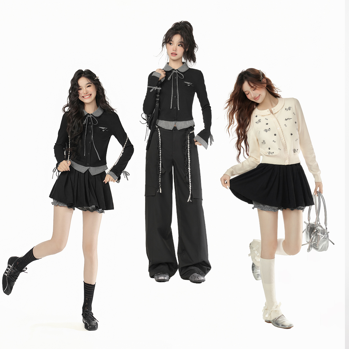 EPTISON套装 miu系穿搭格纹Polo领上衣A字短裙两件套 女2025秋新款
