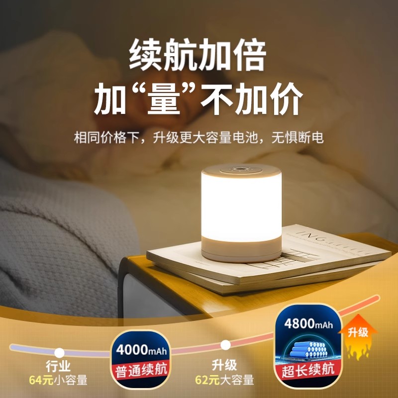 LED小夜灯学生宿舍床上用卧室床头灯睡眠灯无线2025新款 护眼台灯