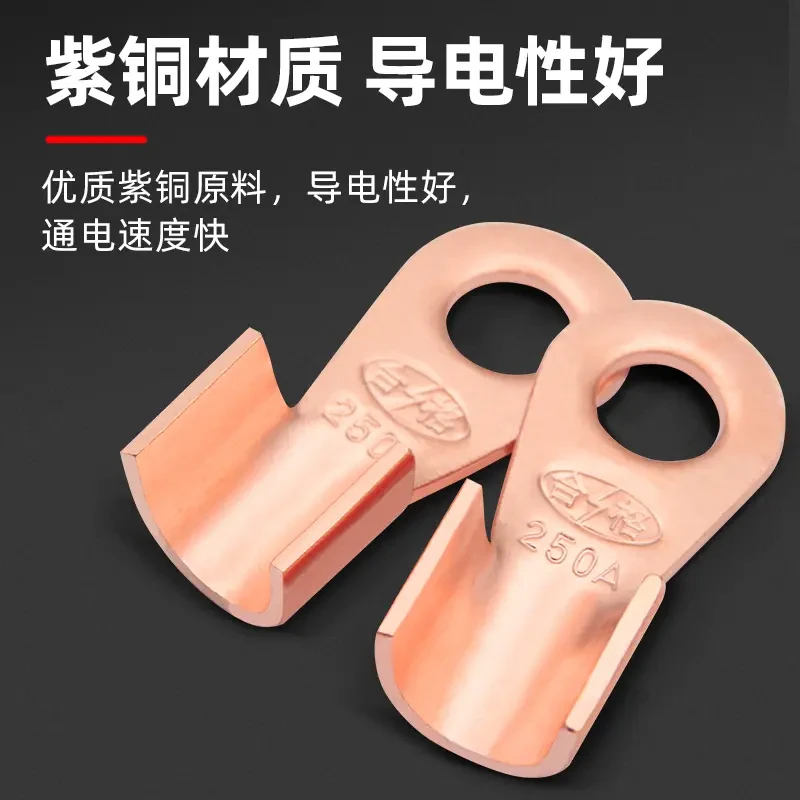 国标OT紫铜开口鼻纯铜接线端子16 100A平方电瓶圆孔线耳铜接头