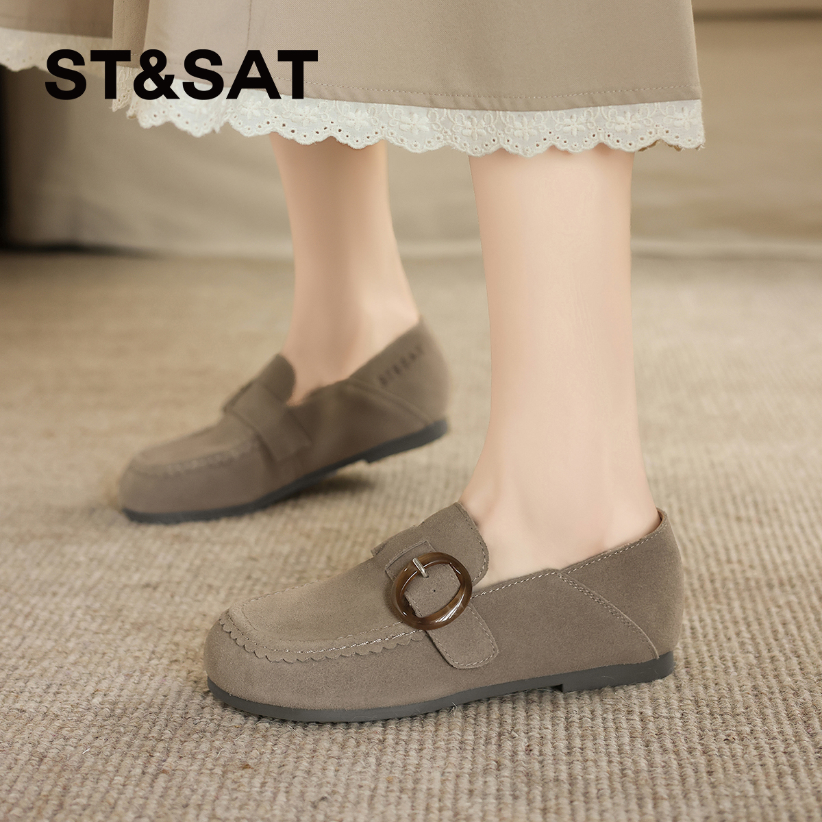 新款 2025秋季 时尚 百搭休闲单鞋 子 星期六真皮软底勃肯鞋 豆豆鞋 女款