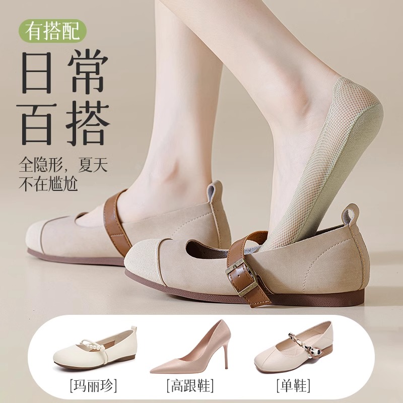高跟鞋 袜子薄款 袜子 冰丝隐形袜棉制底防滑不掉跟浅口鞋 船袜女夏季