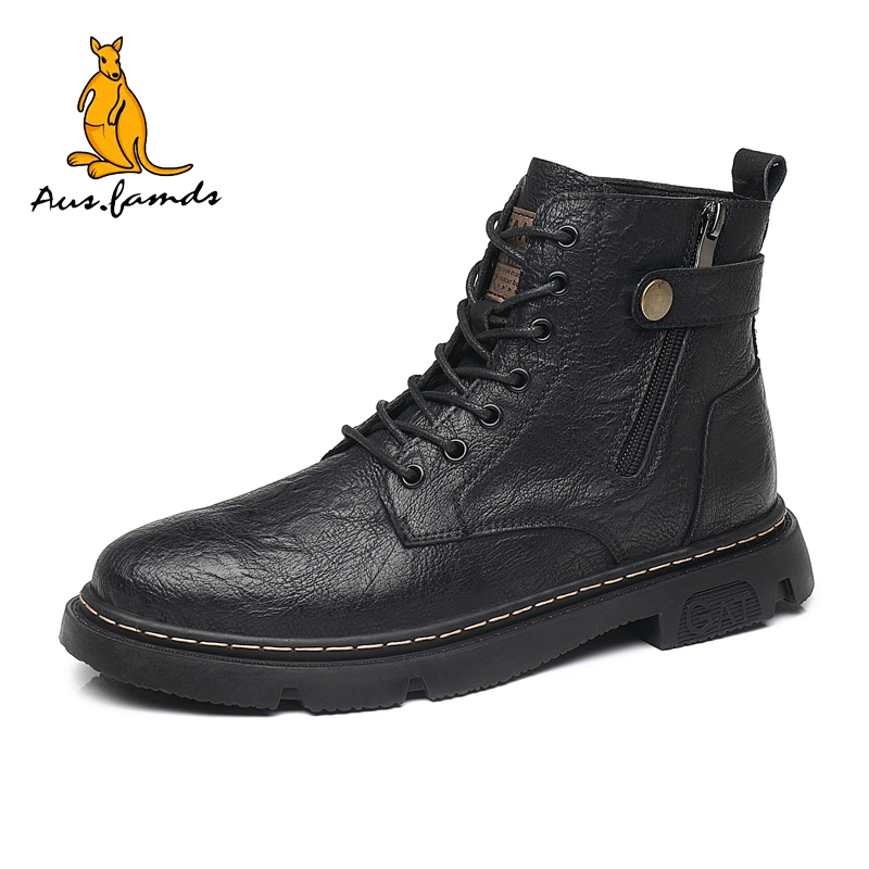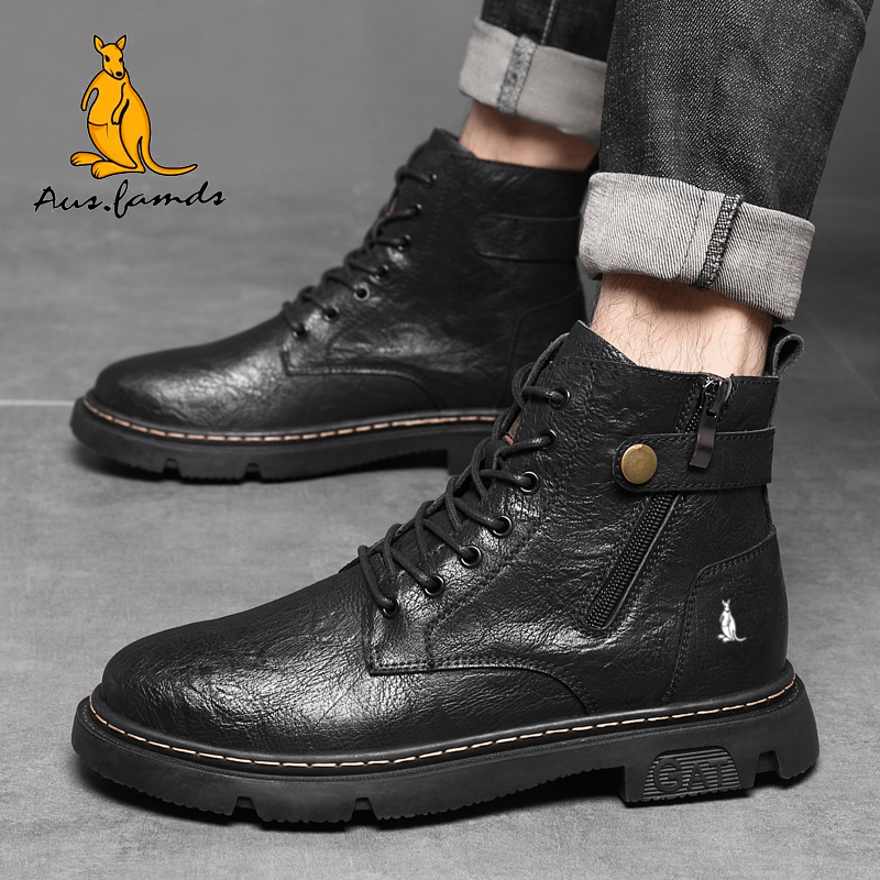 复古棕色厚底机车加绒马丁靴翻毛皮休闲沙漠靴 秋季 马登工装 靴男款