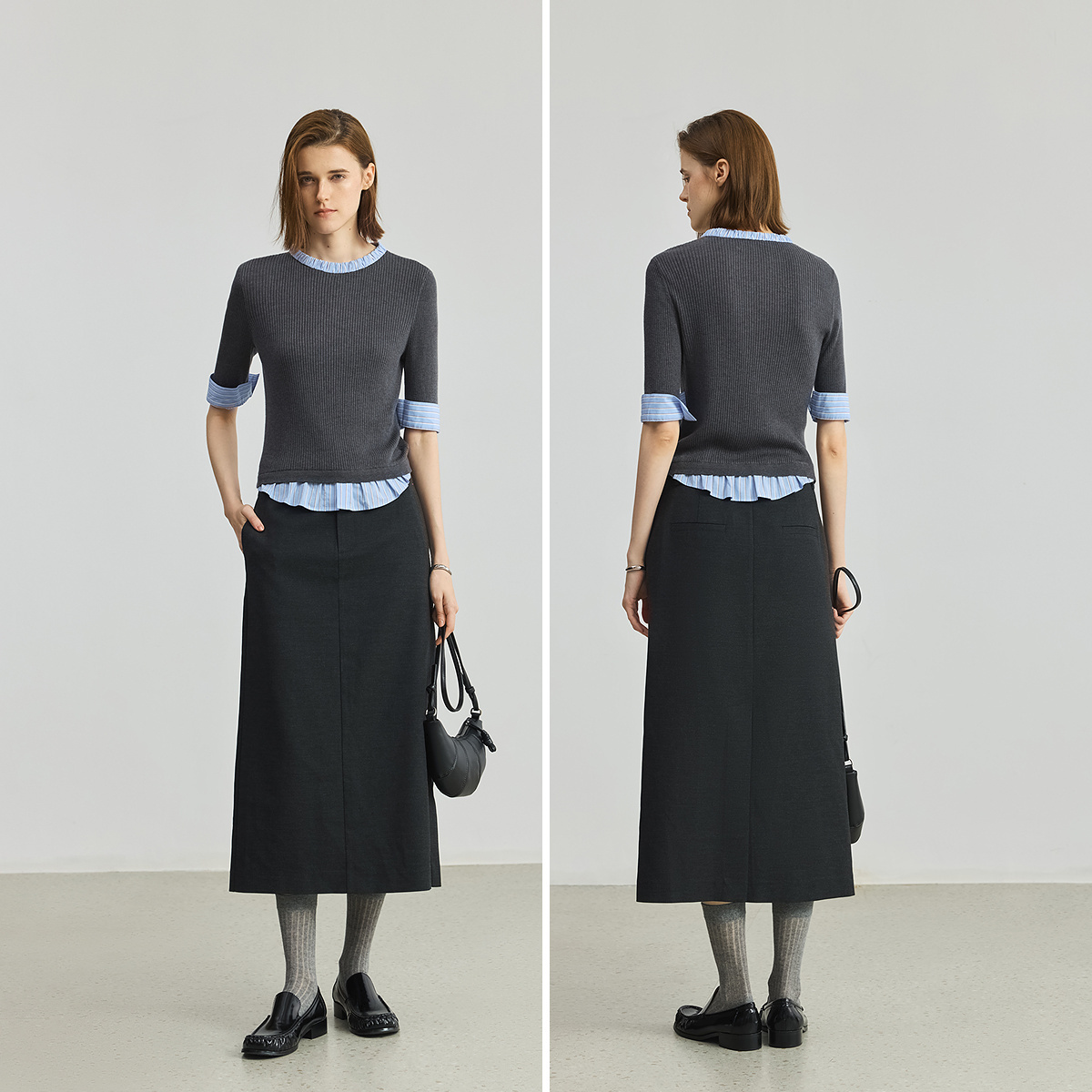 可机洗LILY2025秋新款 含羊毛格雷系职业通勤深色直筒裙女半身裙