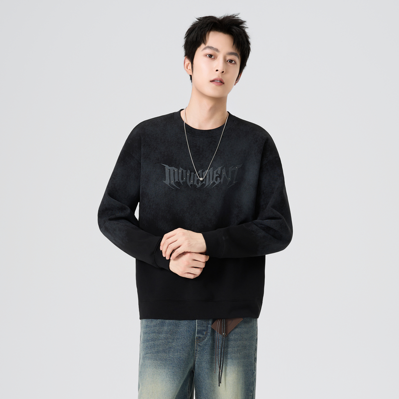 宽松打底衫 卫衣秋冬新款 潮牌圆领休闲上衣 加绒长袖 KZH真维斯男士