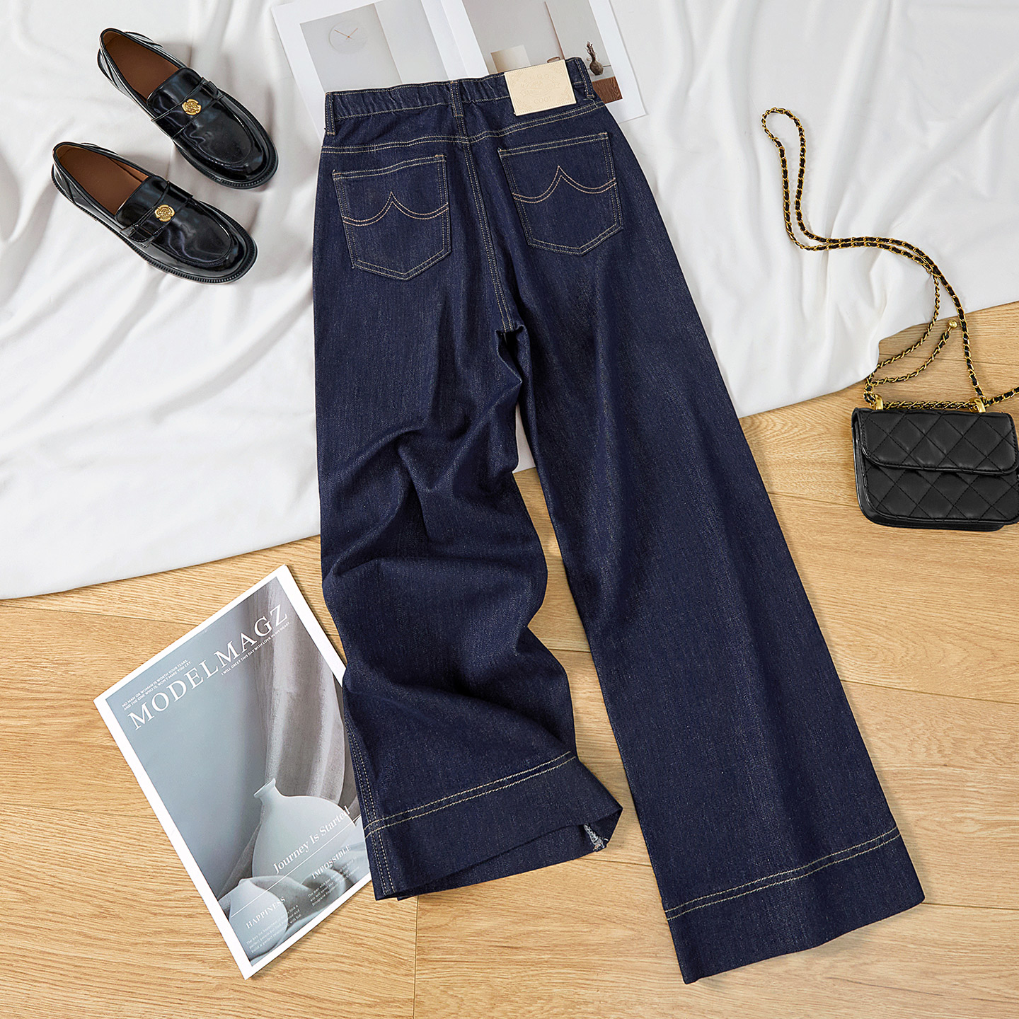 女春秋高腰垂感宽松棉羊毛拖地直筒裤 藏青色仿牛仔天丝西装 阔腿裤