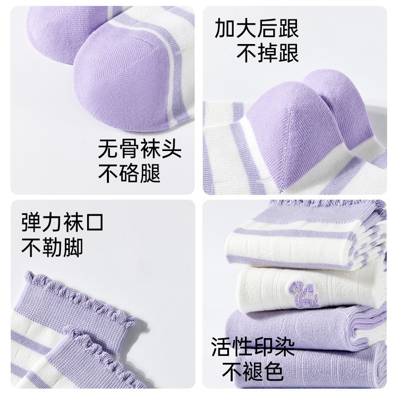 爱莎袜子女青少年学生春夏薄款 中筒袜透气棉袜可爱花边少女长筒袜