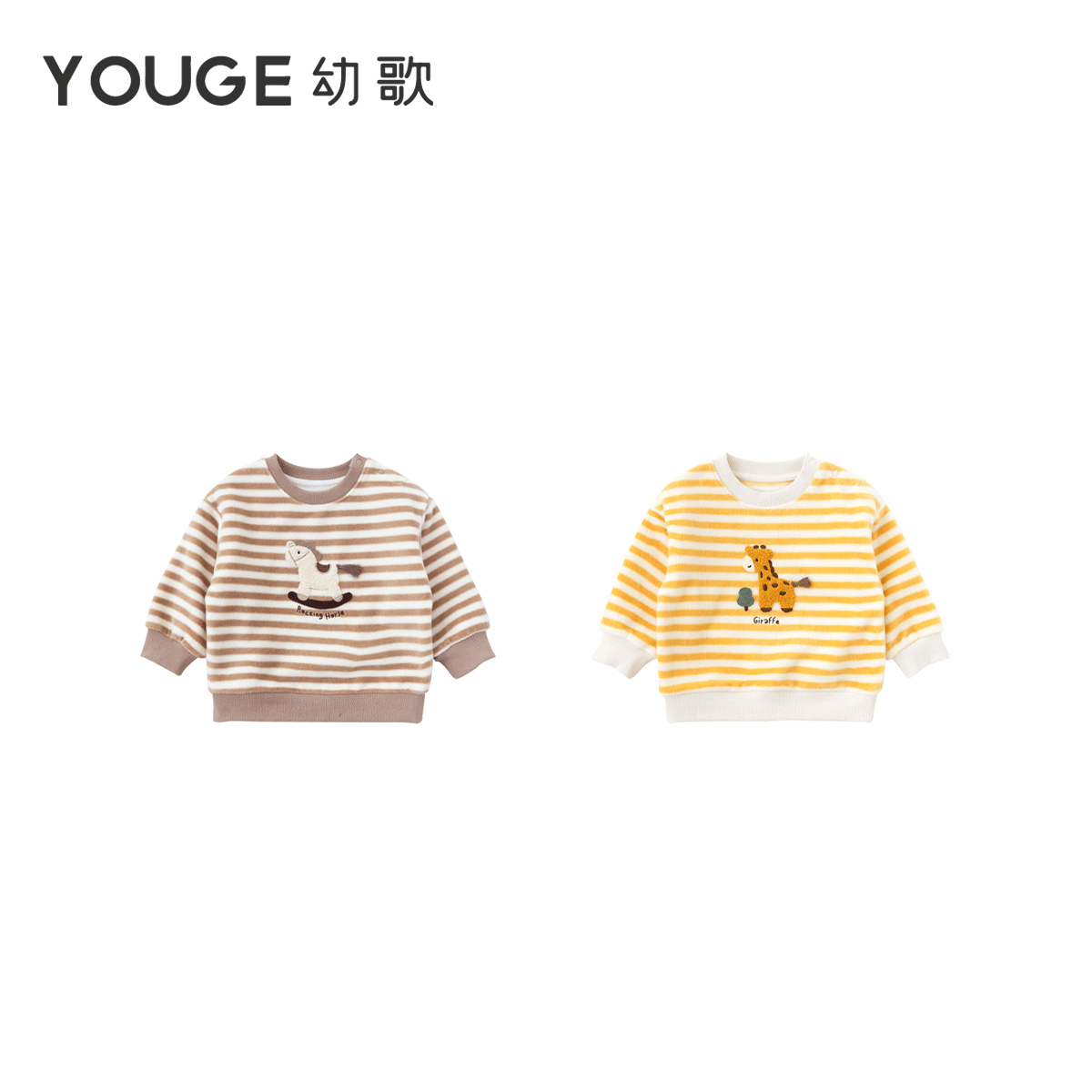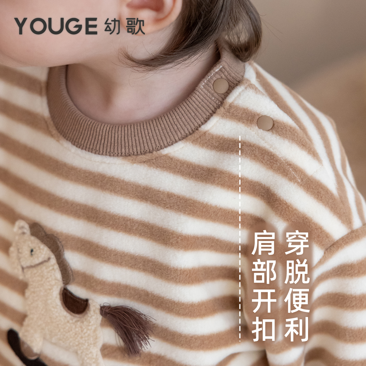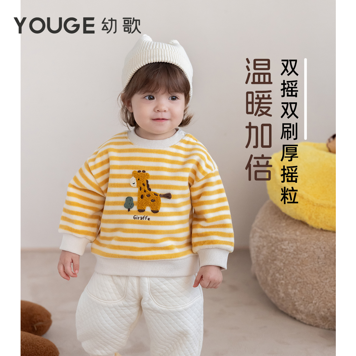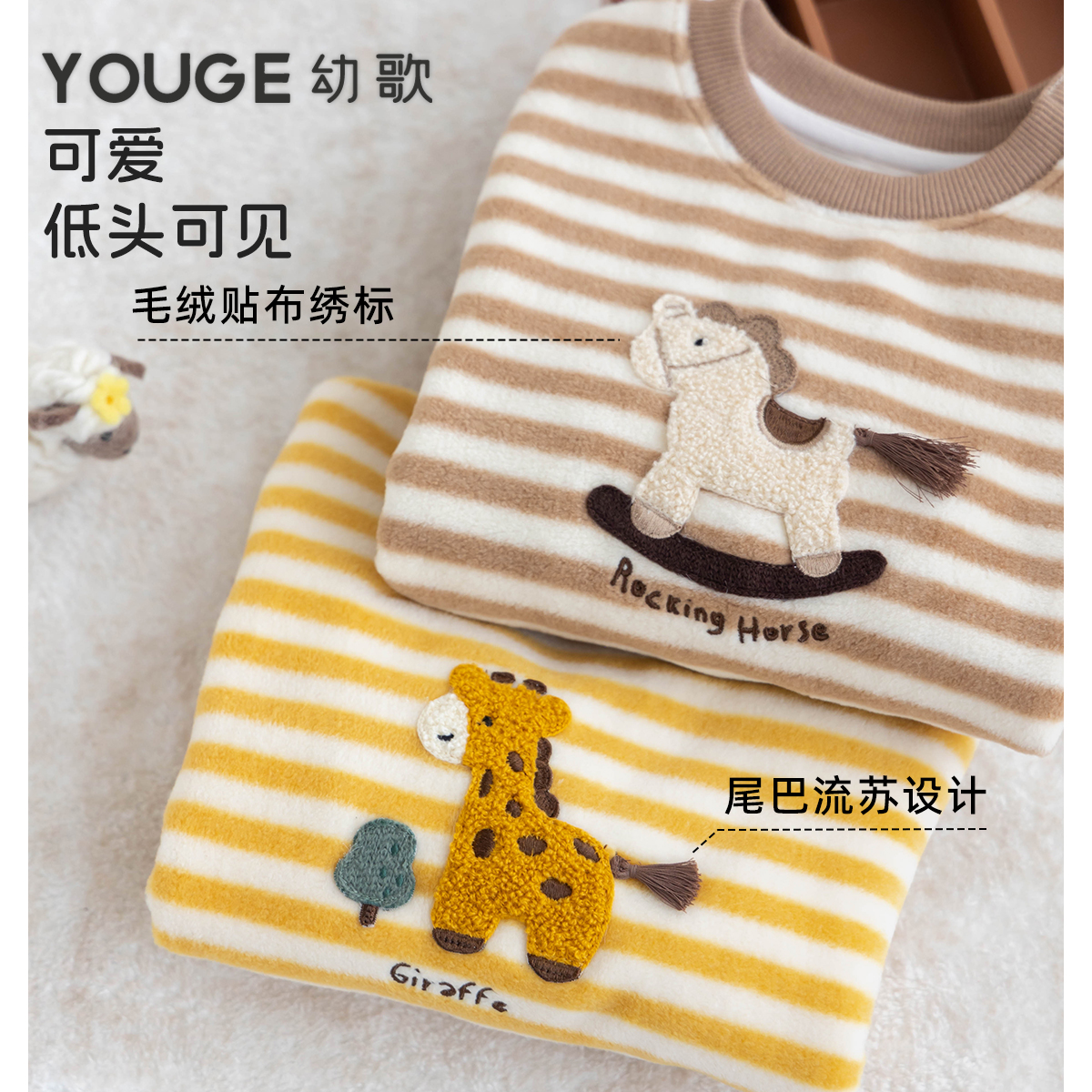 童趣条纹保暖圆领卫衣宝宝加绒加厚上衣 新款 YOUGE幼歌 婴幼儿秋季