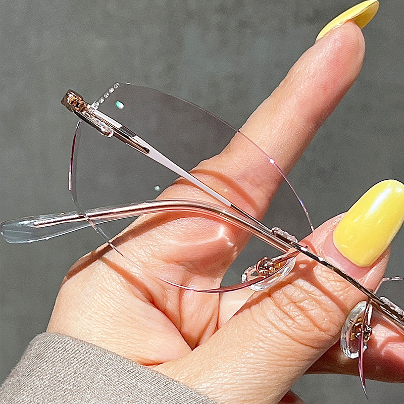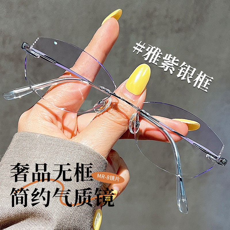 气质款 可配近视高级感钻石切边无框眼睛女士高级感 无边框眼镜女款
