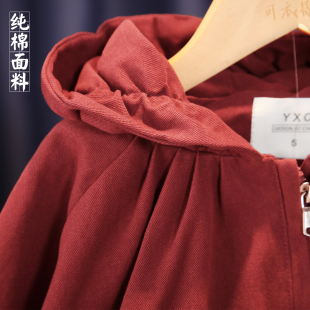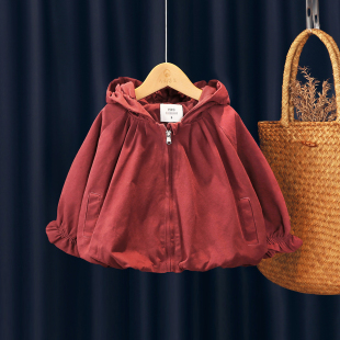 女童外套秋冬季 小女孩洋气好看红色连帽风衣儿童纯棉上衣 2025新款