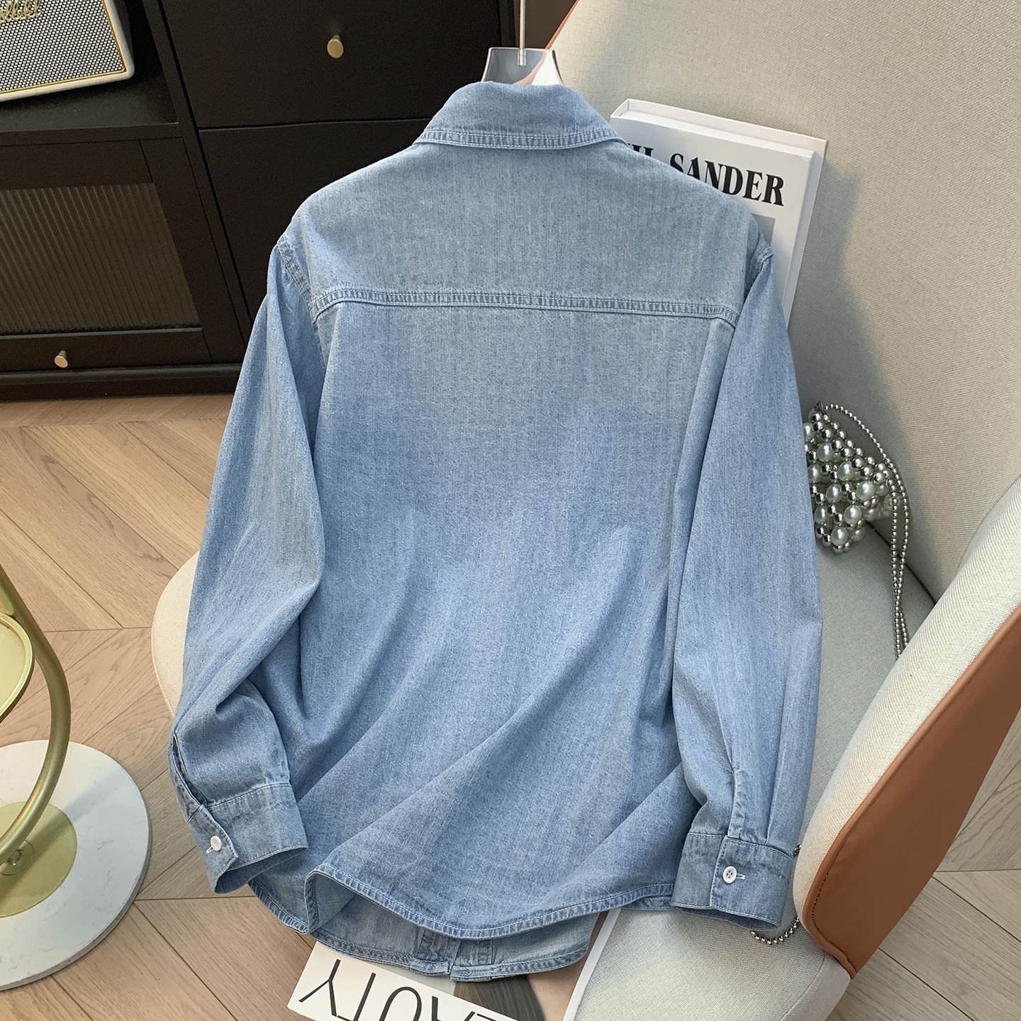 新款 宽松上衣青年衬衣休闲外套衣服男装 男士 衬衫 纯棉牛仔长袖 秋季