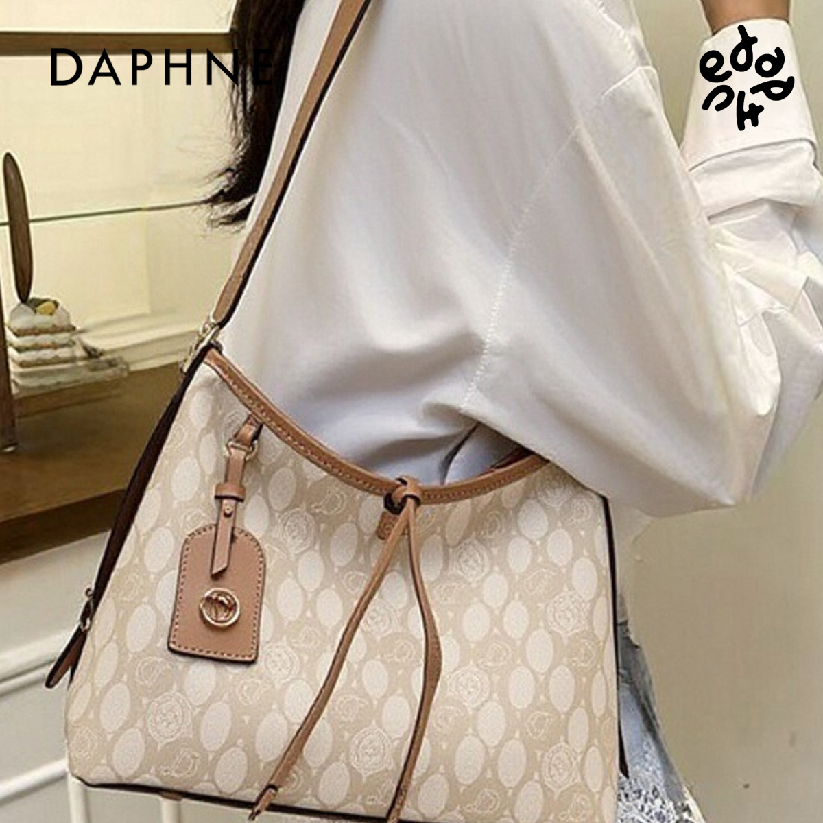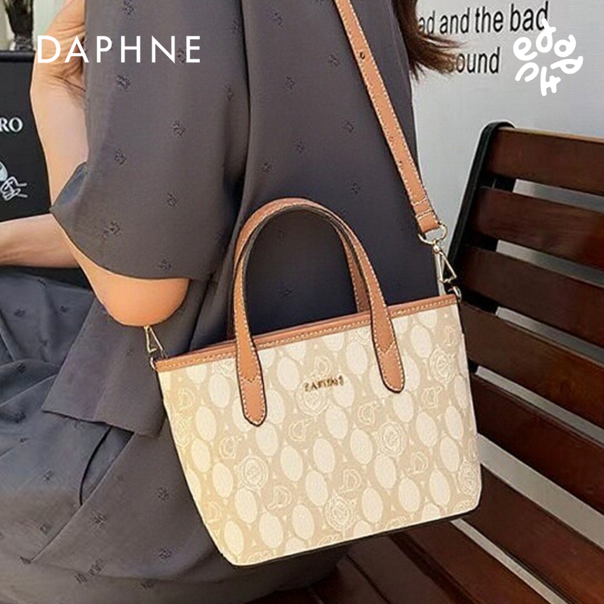 Tagi. 拼色通勤复古单肩包帆布托特手提斜挎包 想象苹果