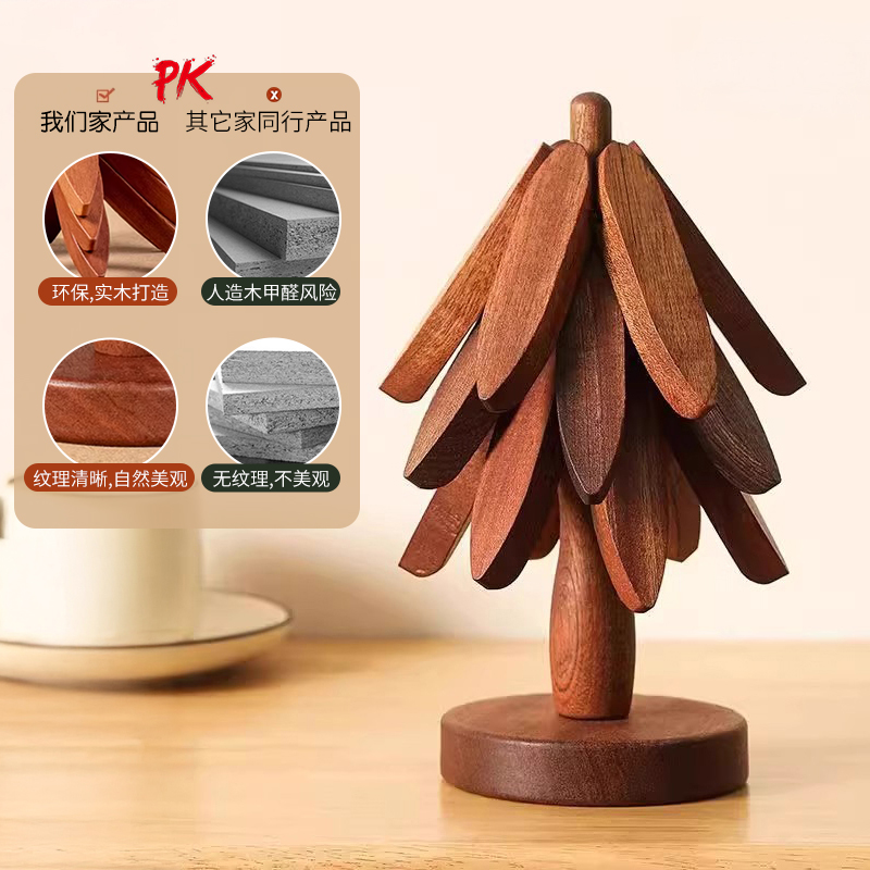 圣诞树隔热垫餐桌防烫垫一棵树实木玄关装 饰摆件乔迁新居礼物搬家