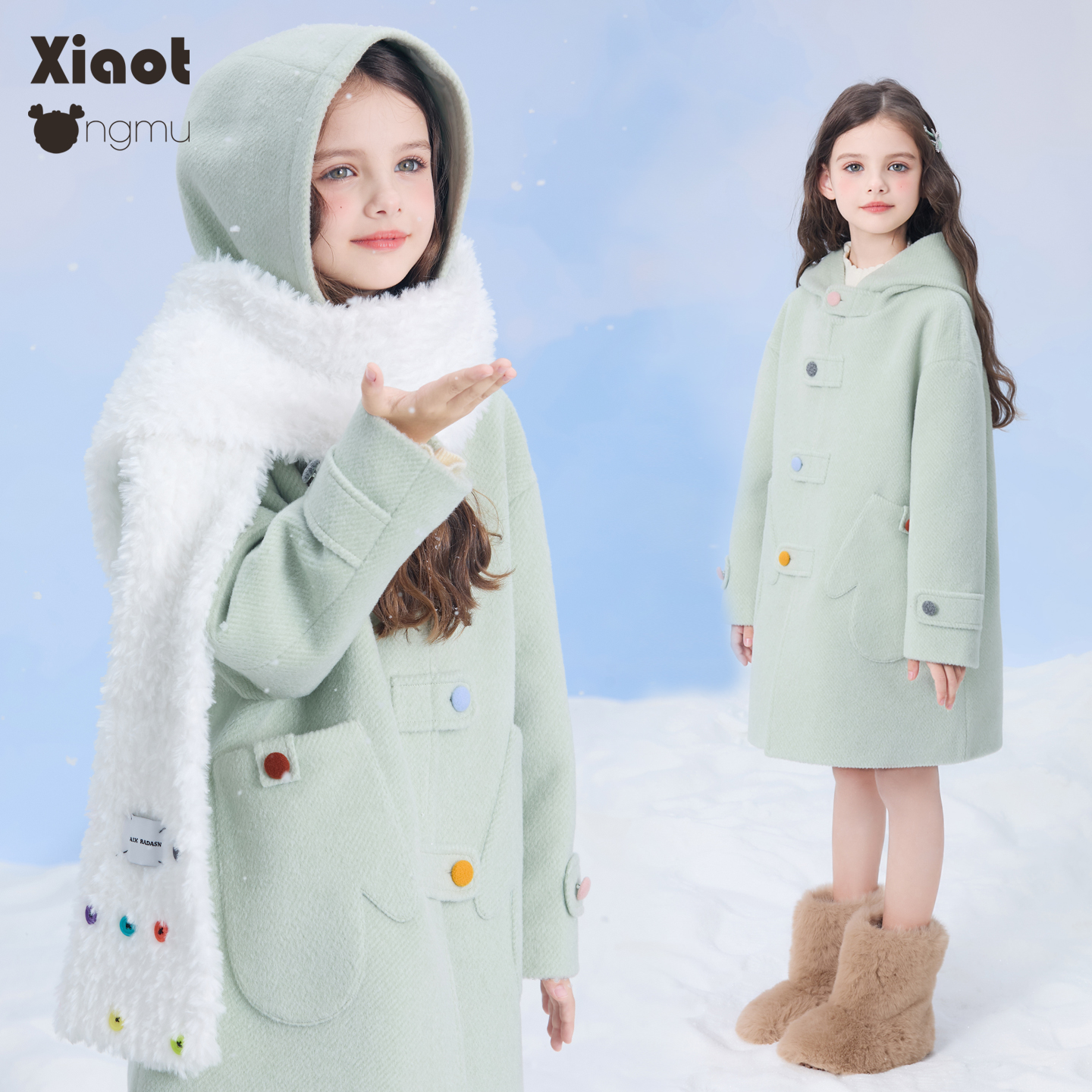 宽松毛呢大衣新品 Fabrique 贝贝羊驼毛牛角扣中长款 红茶 英式