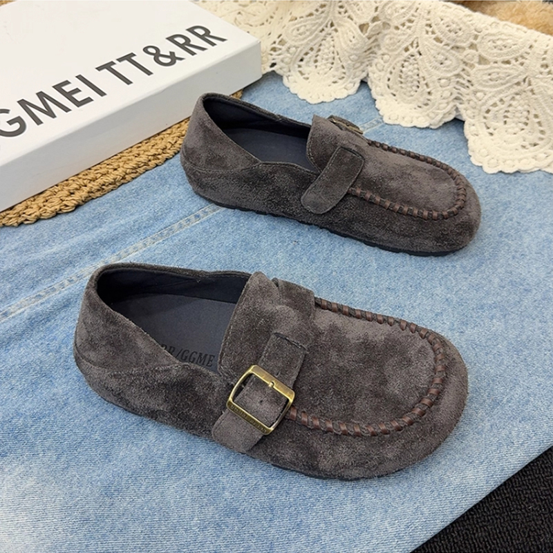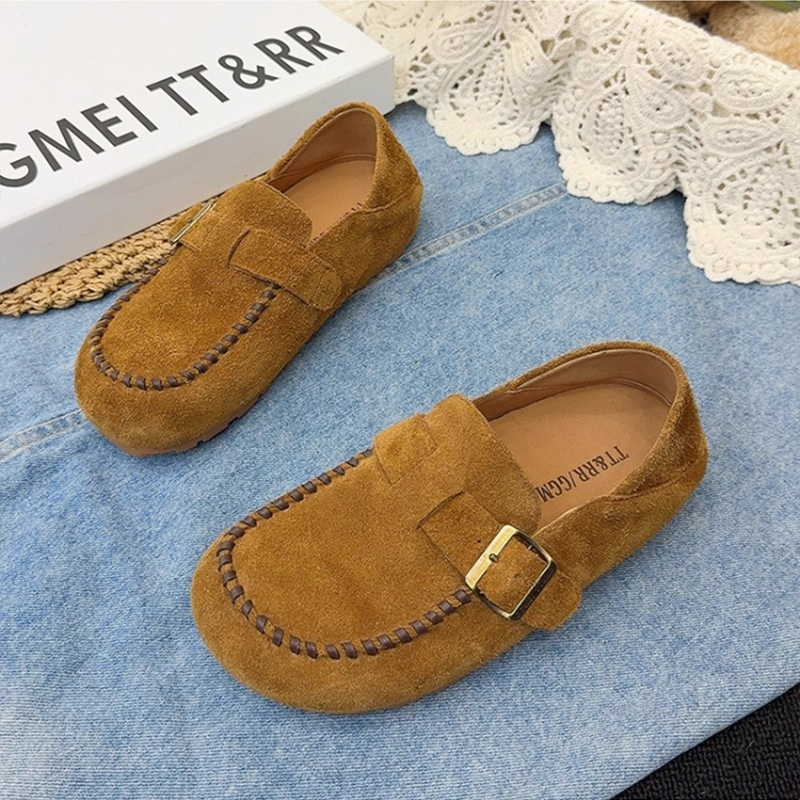 女平底豆豆鞋 一脚蹬懒人鞋 2025秋季 复古大头乐福鞋 新款 真皮勃肯鞋