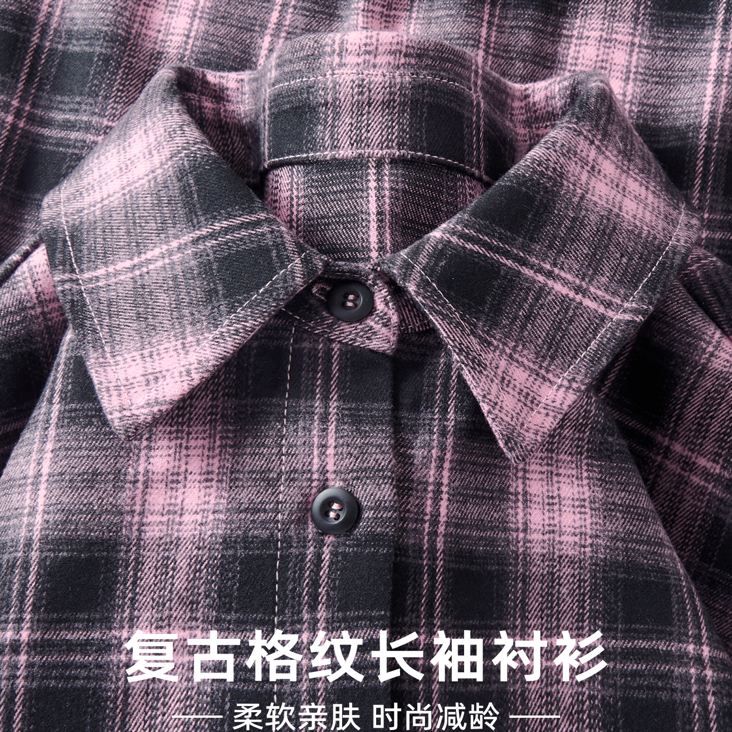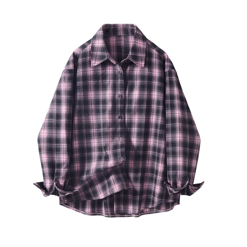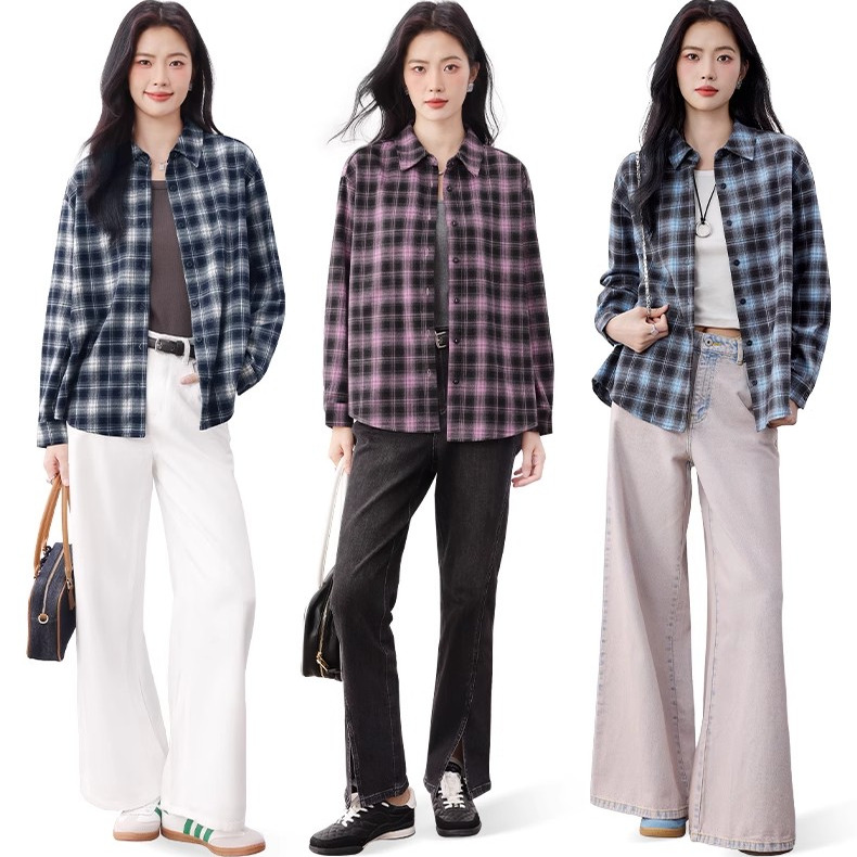 18345614 女长袖 设计师款 佐丹奴宽松miu系学院风花边立领格纹衬衫